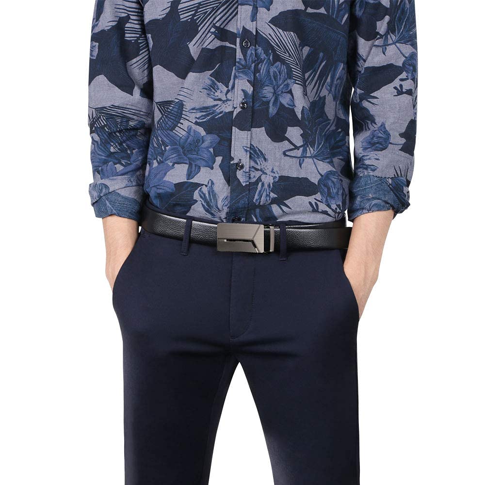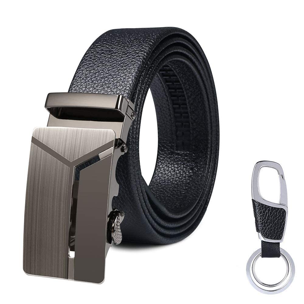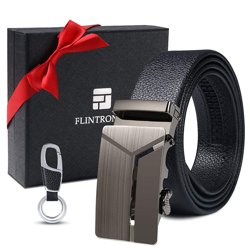 flintronic Herren Gürtel,Hochwertiges Leder material Ratsche Automatik Gürtel für Männer Ledergürtel Breite 3.5cm Länge 130CM-Schwarz (inkl Schlüsselbund & Geschenkbox)