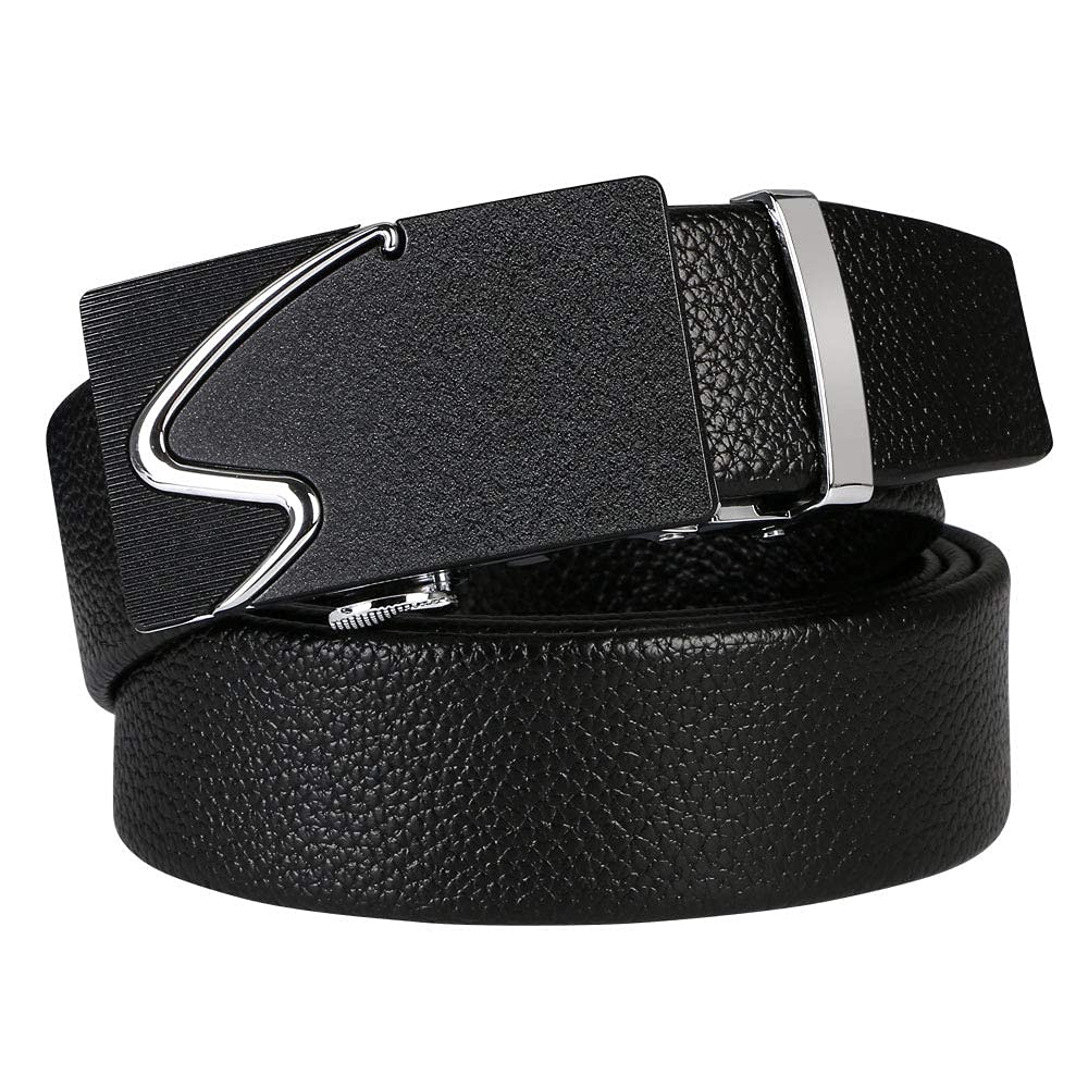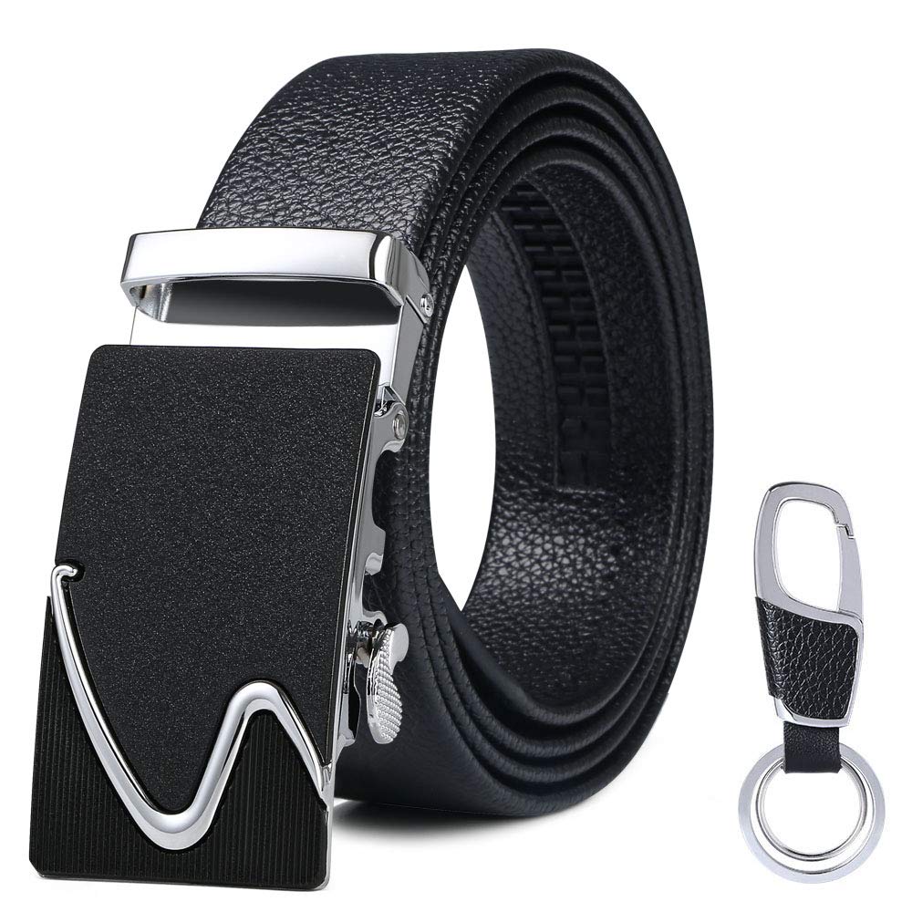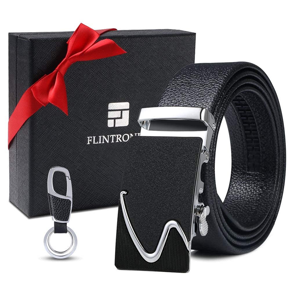 flintronic Herren Gürtel,Hochwertiges Leder material Ratsche Automatik Gürtel für Männer Ledergürtel Breite 3.5cm Länge 130CM-Schwarz (inkl Schlüsselbund & Geschenkbox)
