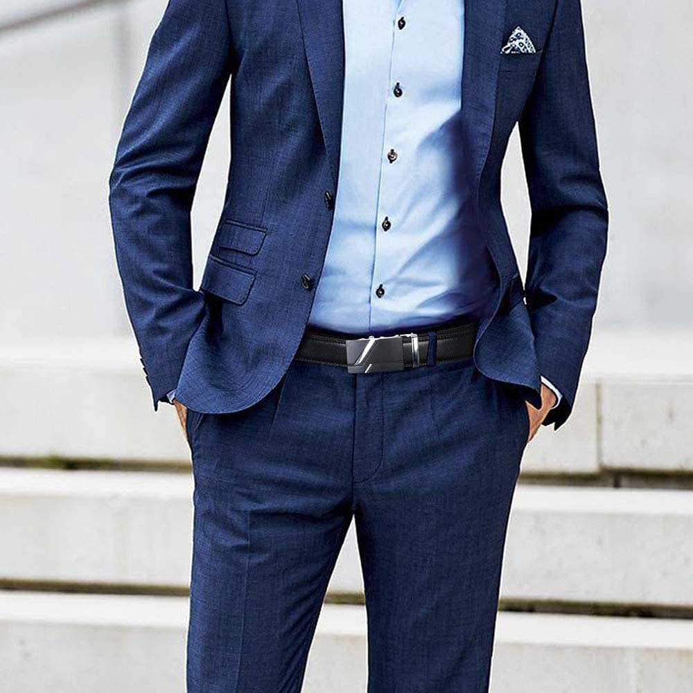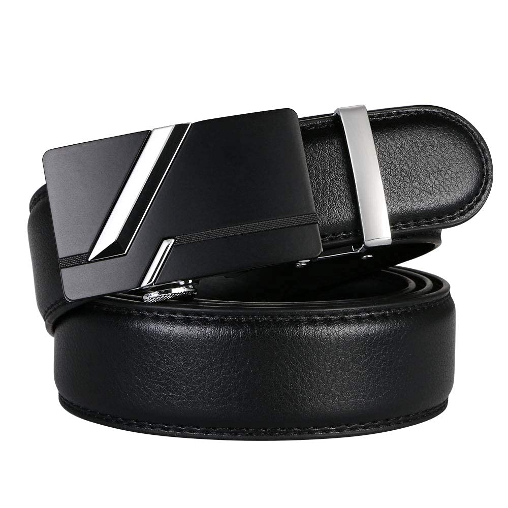 flintronic Herren Gürtel,Hochwertiges Leder material Ratsche Automatik Gürtel für Männer Ledergürtel Breite 3.5cm Länge 130CM-Schwarz (inkl Schlüsselbund & Geschenkbox)
