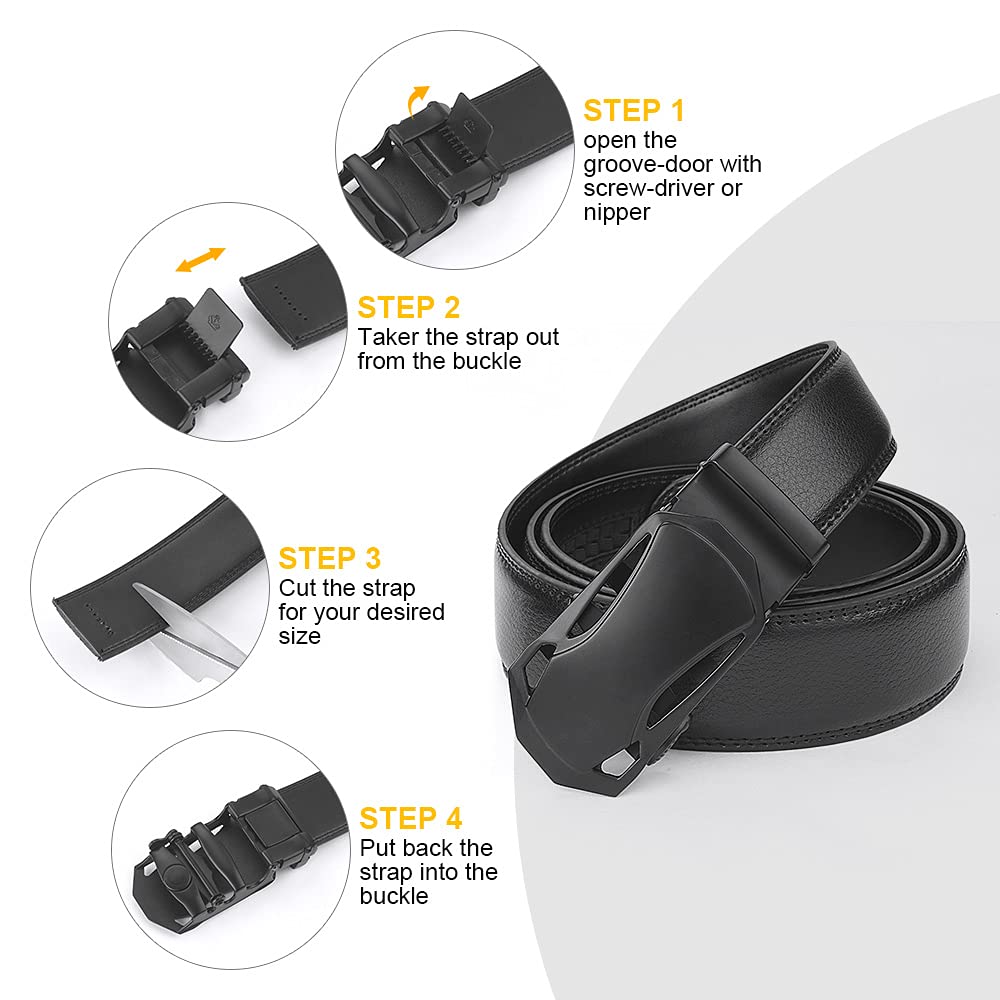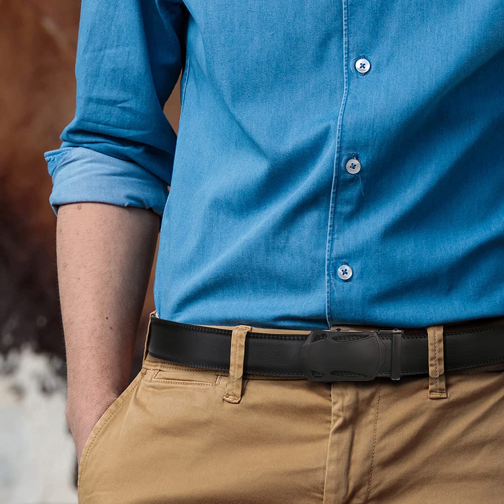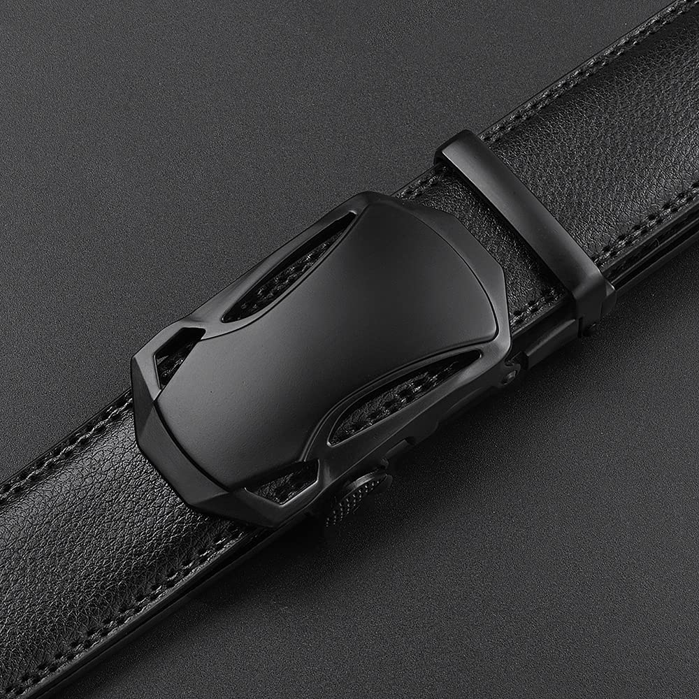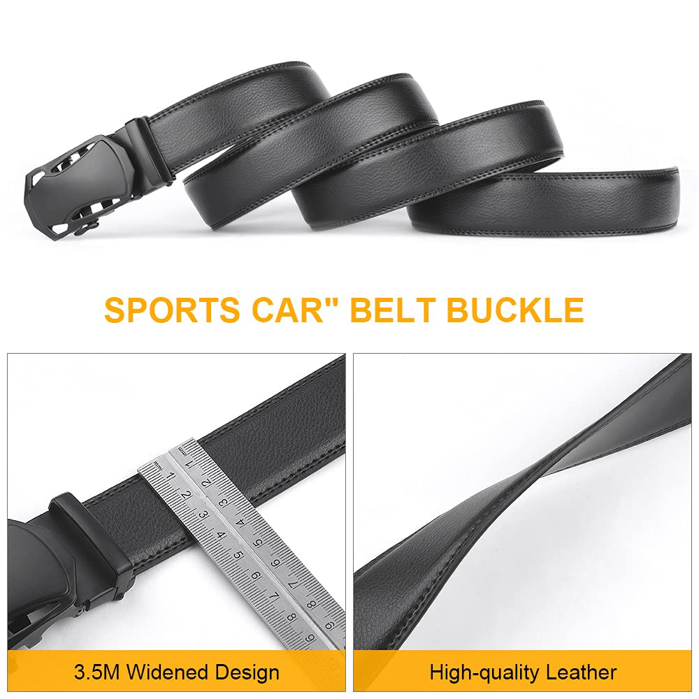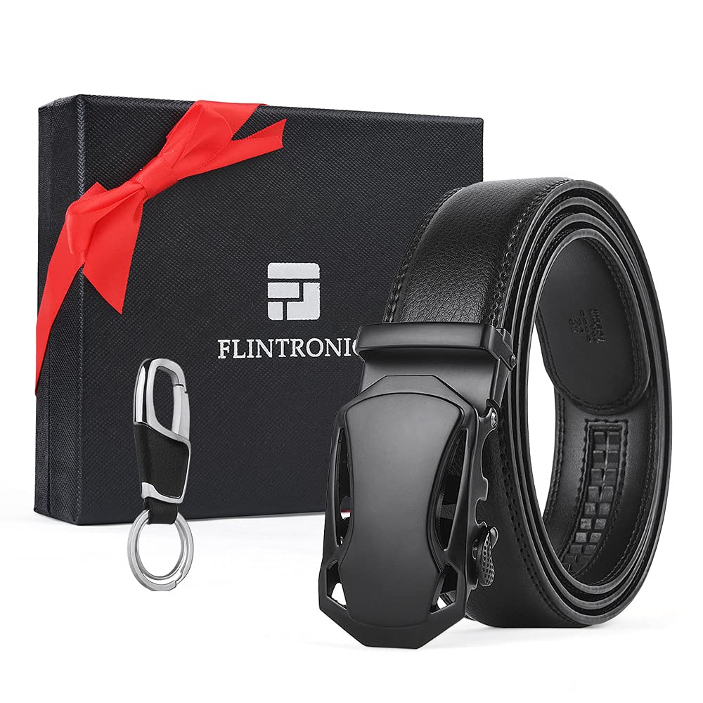 flintronic Herren Gürtel,Hochwertiges Leder material Ratsche Automatik Gürtel für Männer Ledergürtel Breite 3.5cm Länge 130CM-Schwarz (inkl Schlüsselbund & Geschenkbox)