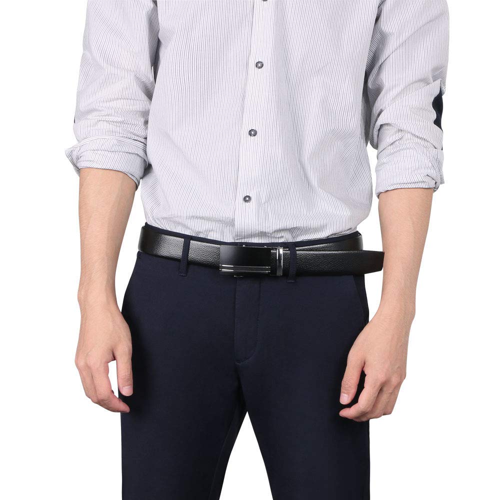 flintronic Herren Gürtel,Hochwertiges Leder material Ratsche Automatik Gürtel für Männer Ledergürtel Breite 3.5cm Länge 130CM-Schwarz (inkl Schlüsselbund & Geschenkbox)