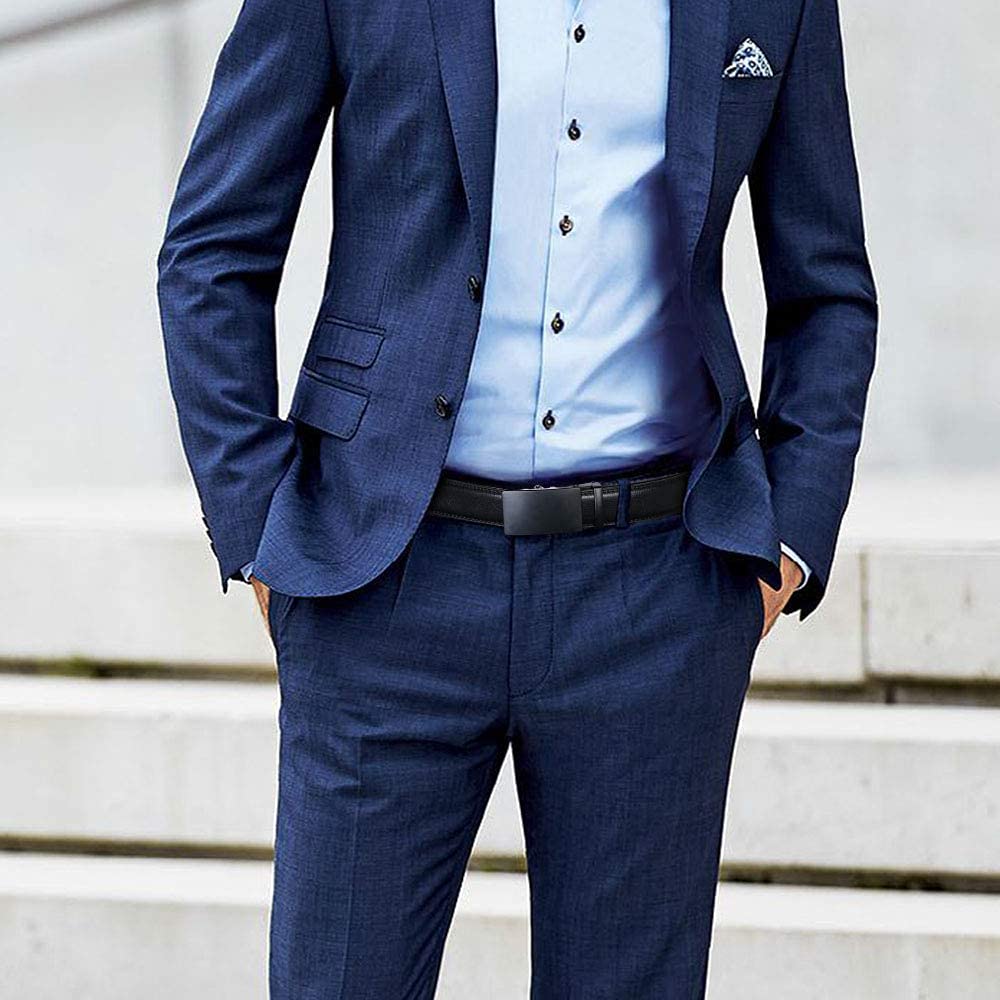 flintronic Herren Gürtel,Hochwertiges Leder material Ratsche Automatik Gürtel für Männer Ledergürtel Breite 3.5cm Länge 130CM-Schwarz (inkl Schlüsselbund & Geschenkbox)