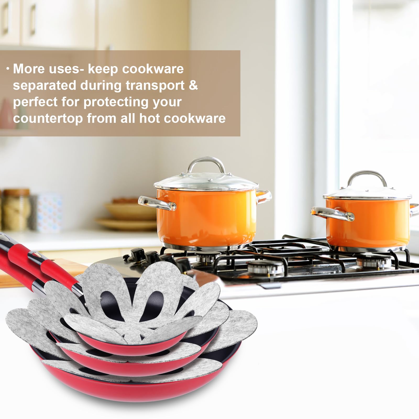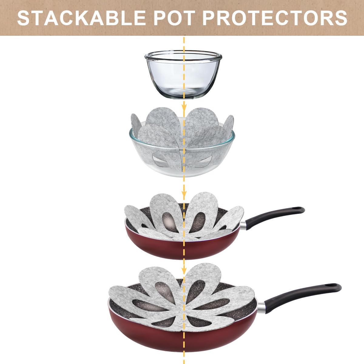 Flintronic Pfannenschoner, 6er Pfannenschutz Topfschutz, 35.5cm Extra Dicke Topfuntersetzer, Topfschoner Anpassbare Grösse, Anti-Rutsch Stapelschutz für Pfannen, Töpfe, Schüsseln, Küchenutensilien