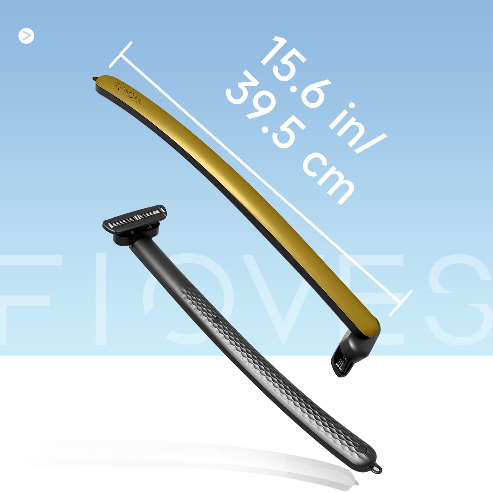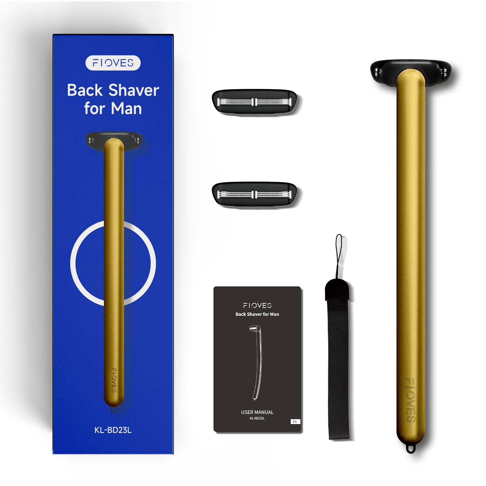 FLOVES Rückenrasierer Herren - 3 magnetische Ersatzrasierer, Rasierer mit 3-lagigen Klingen und schwenkbarem Scherkopf, 39,5cm langer Griff, Körperhaarschneider für Männer (Gold)