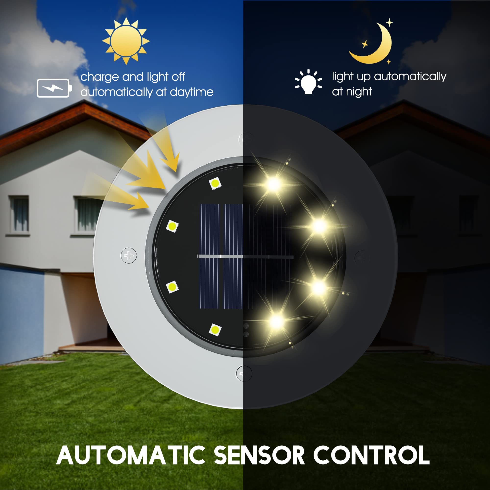 FLOWood 12 Stück Solar Bodenleuchte für Garten 8 LEDS Warmweiss Aussenleuchte Wasserdicht Gartenleuchte Edelstahl Kunststoff ampe für aussen Auffahrt Gehweg Patio Garden [Energieklasse A]