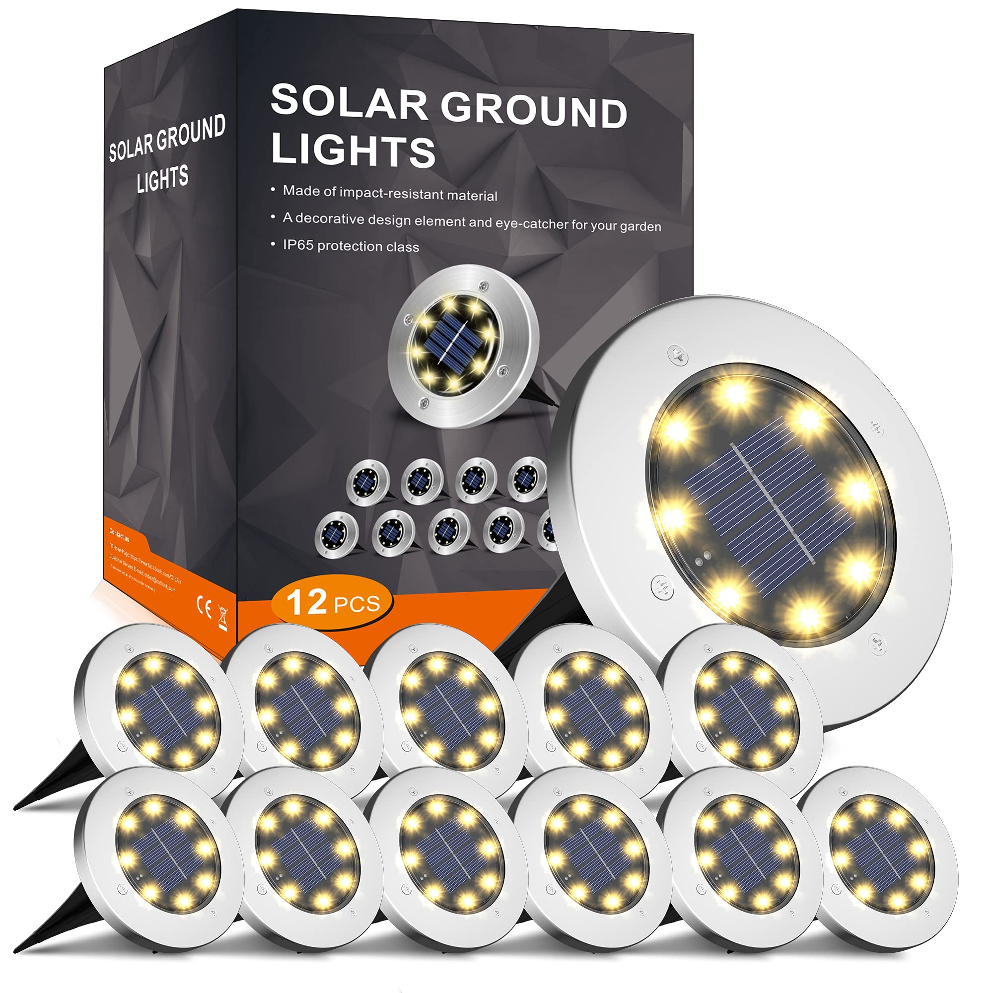 FLOWood Solar Bodenleuchte für Garten 8 LEDS Aussenleuchte Wasserdicht Gartenleuchte Edelstahl Kunststoff ampe für aussen Warmweiss 12 Stk [Energieklasse A]