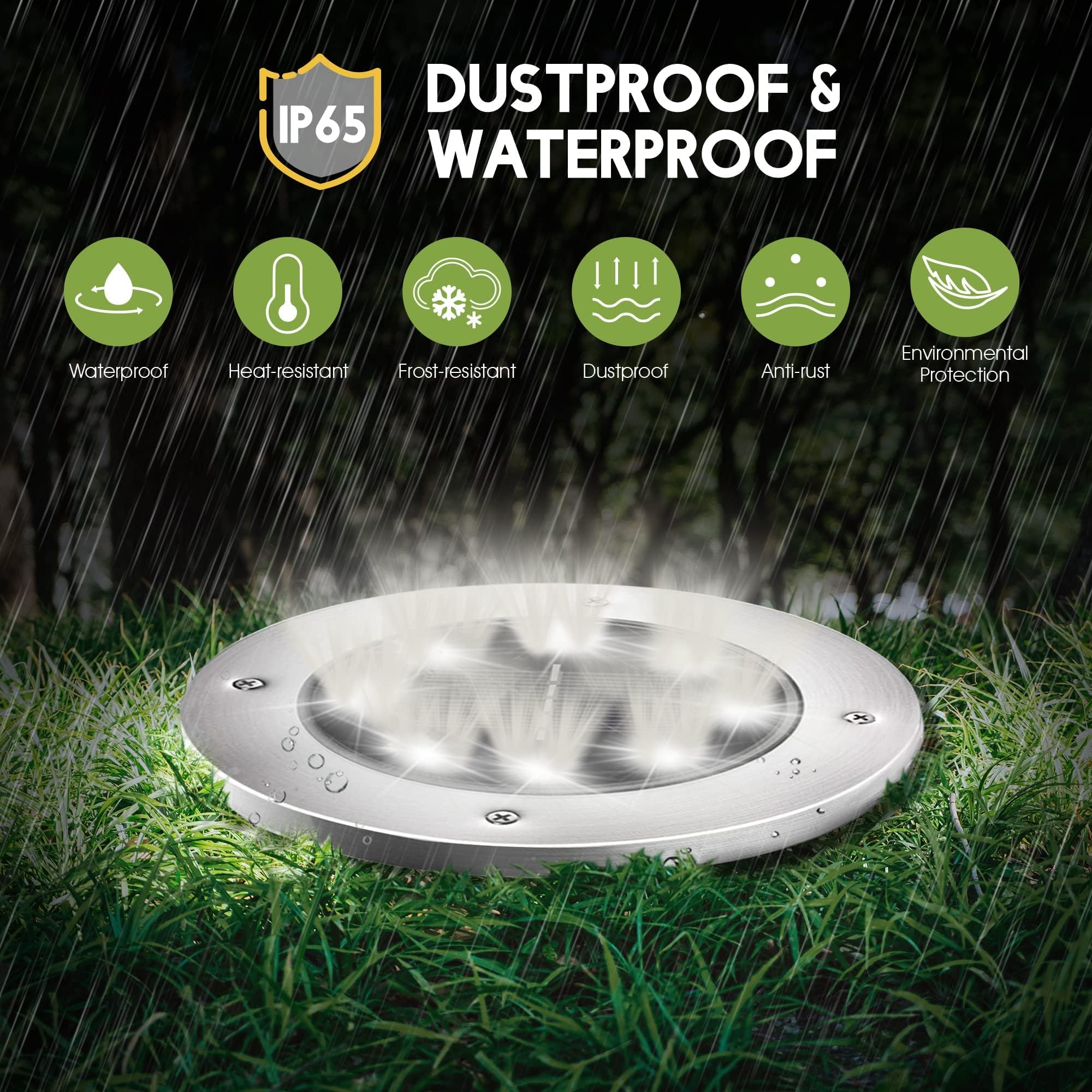 FLOWood Solar Bodenleuchte Solarleuchte für Garten Kaltweiss Solar Aussenleuchte 8 LEDs wasserdicht Edelstahl + Kunststoff 12 Stk