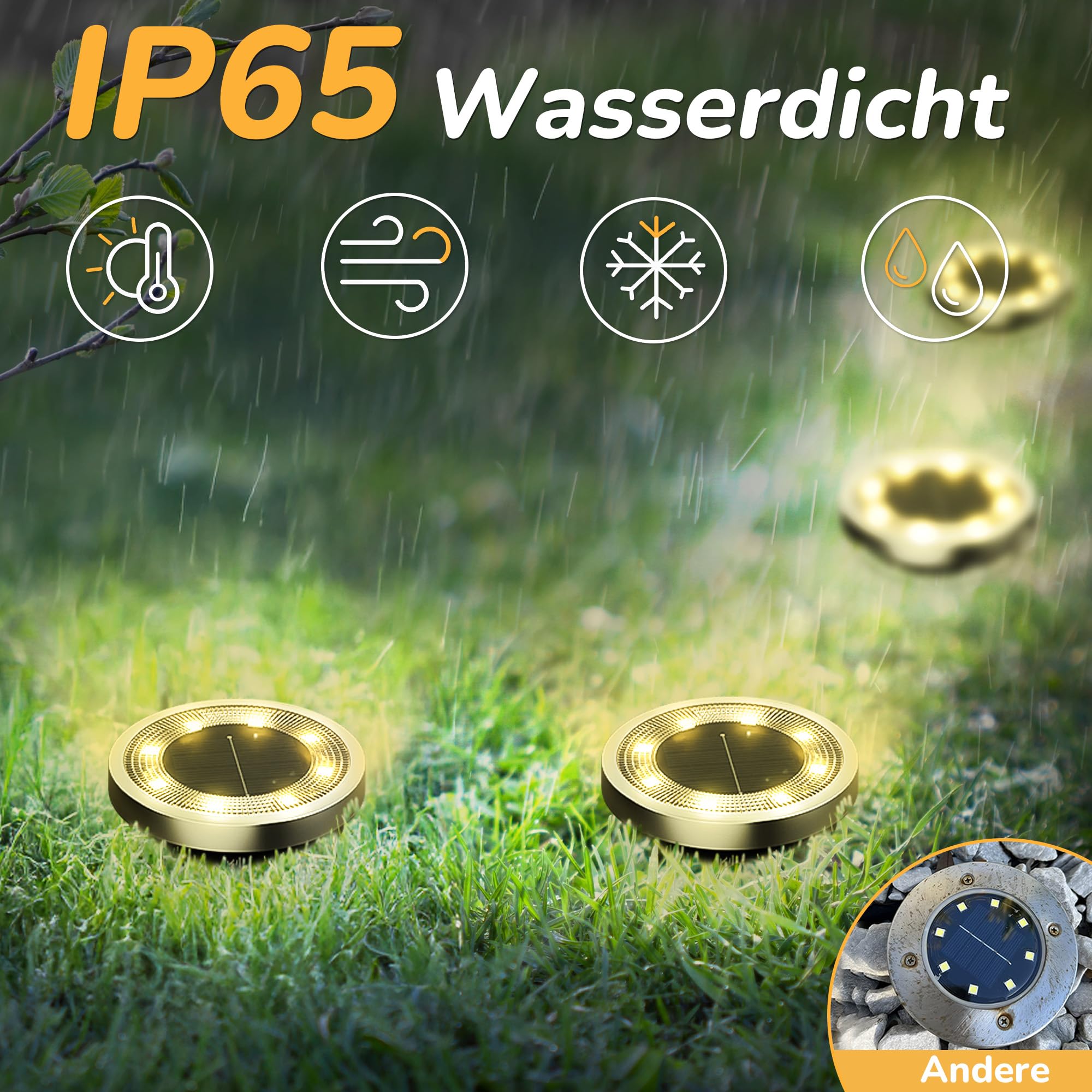 FLOWood 10 Stück Solar Bodenleuchten Aussen, Warmweiss Solarleuchten für Garten Aussen mit 8 LEDs, Wasserdicht Led Solar Gartenleuchten, Solarlampen für Aussen Garten Rasen Gehweg Patio Warmweiss