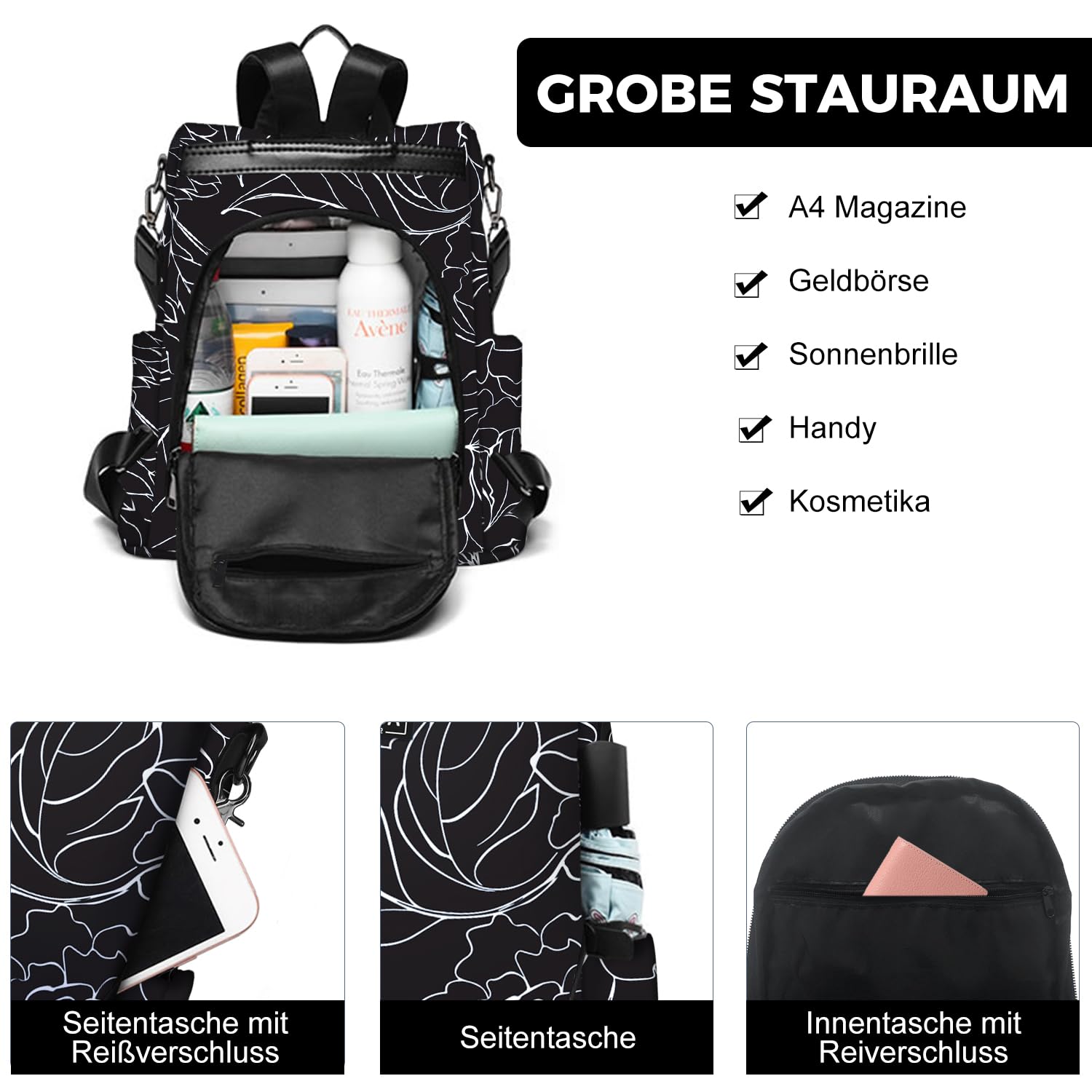 Fmeida Rucksack Damen Anti Diebstahl Nylon Handtaschen Wasserdichte 2 in 1 Schultertasche Casual Daypack Klein Reiserucksack für Frauen Mädchen