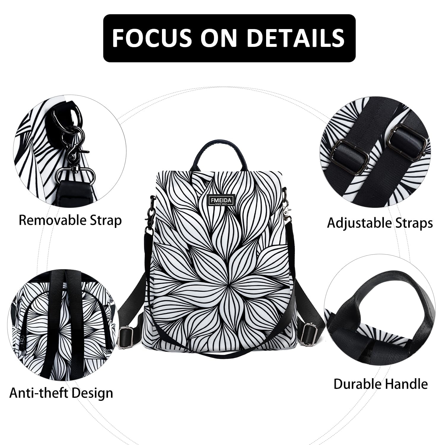 Fmeida Rucksack Damen Anti Diebstahl Nylon Handtaschen Wasserdichte 2 in 1 Schultertasche Casual Daypack Klein Reiserucksack für Frauen Mädchen