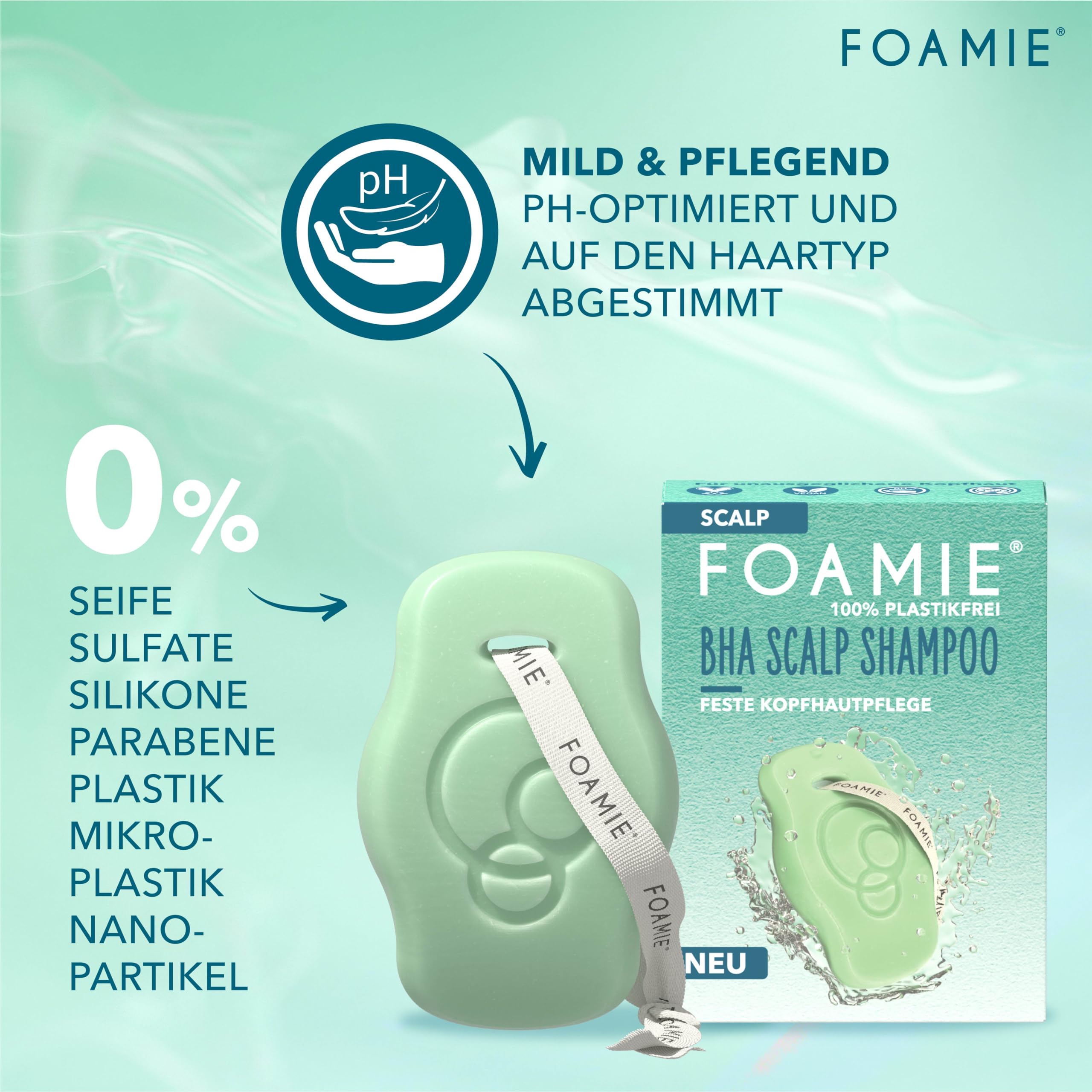 Foamie Festes Shampoo SCALP, Anti-Schuppen Shampoo Kopfhaut mit BHA, Salizylsäure & Malvenblütenextrakt, Spezialisiert auf Kopfhautpflege, Kraftloses Haar & Anti-Schuppen Lösung, 80g (Packung mit 2)