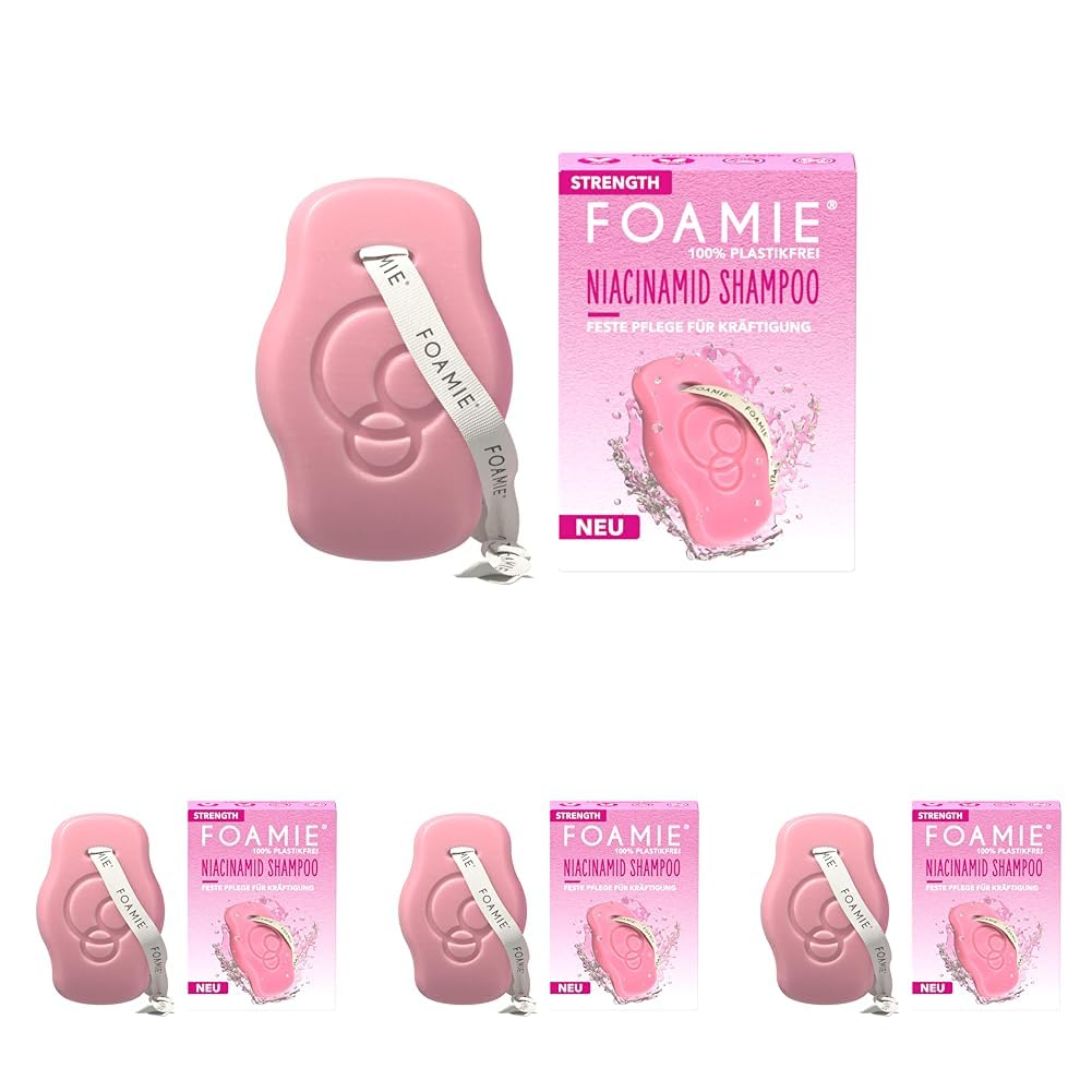 Foamie Festes Shampoo STRENGTH mit Niacinamid, Shampoo Volumen für Feines & Dünnes Haar, Niacin & Reisextrakte für intensiven Schutz & Kräftigung, 80g (Packung mit 4)