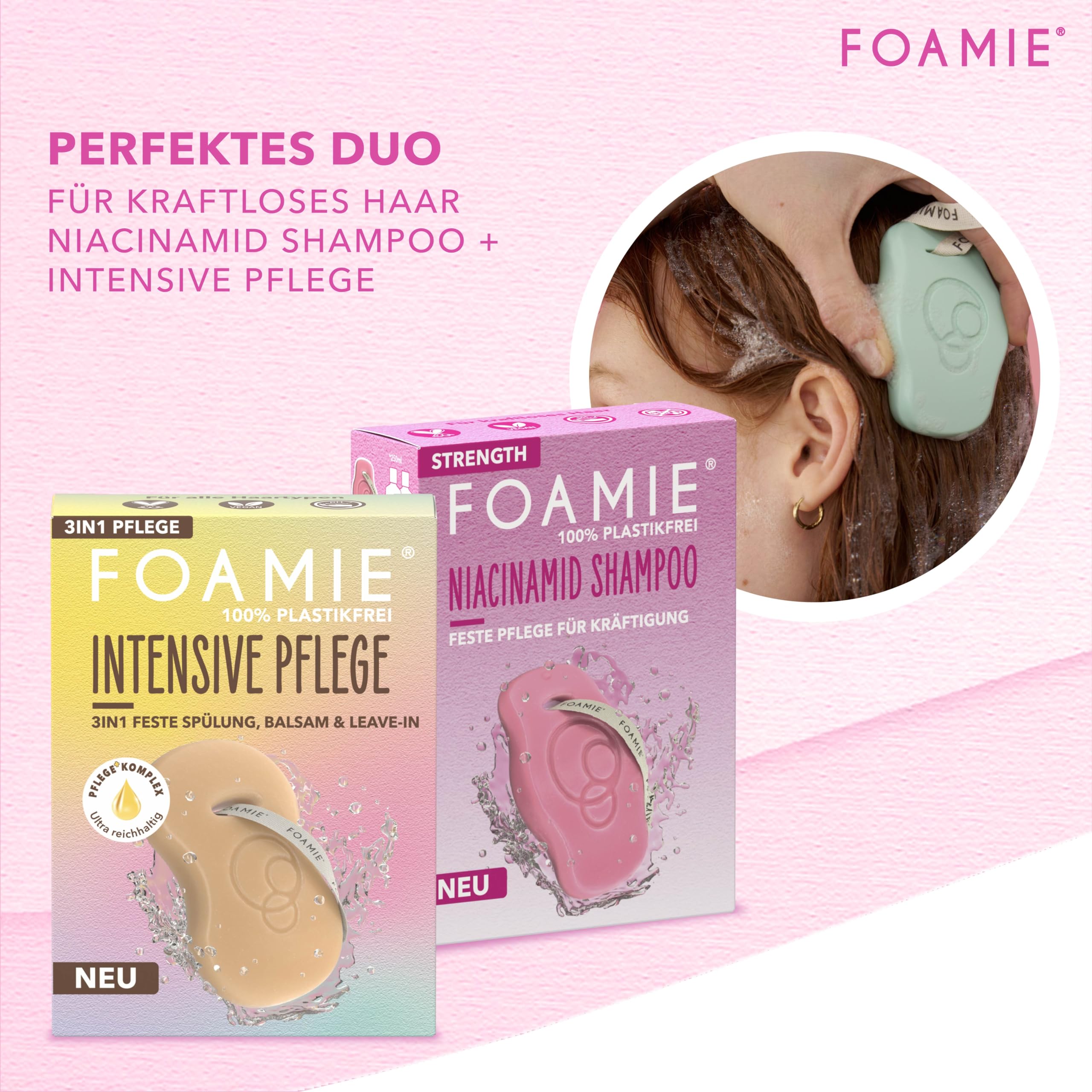 Mindestanzahl für die Bestellung von "Foamie Festes Shampoo STRENGTH mit Niacinamid, Shampoo Volumen für Feines & Dünnes Haar, Niacin & Reisextrakte für intensiven Schutz & Kräftigung, 80g (Packung mit 4)" ist 1.