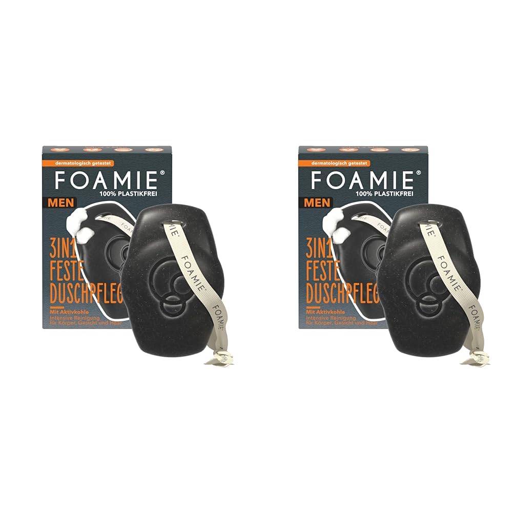 Foamie Men 3in1 Duschgel & Shampoo 2×90 g – Festes Männerpflege-Set mit Aktivkohle & Rosenholz, Vegan & Plastikfrei