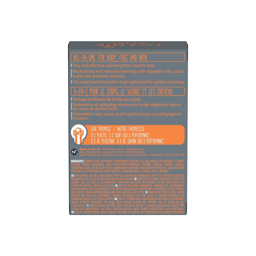 Foamie Men 3in1 Festes Shampoo, Duschgel & Gesichtsreiniger 90 g – Aktivkohle, Holzig-frischer Duft, Vegan & Plastikfrei
