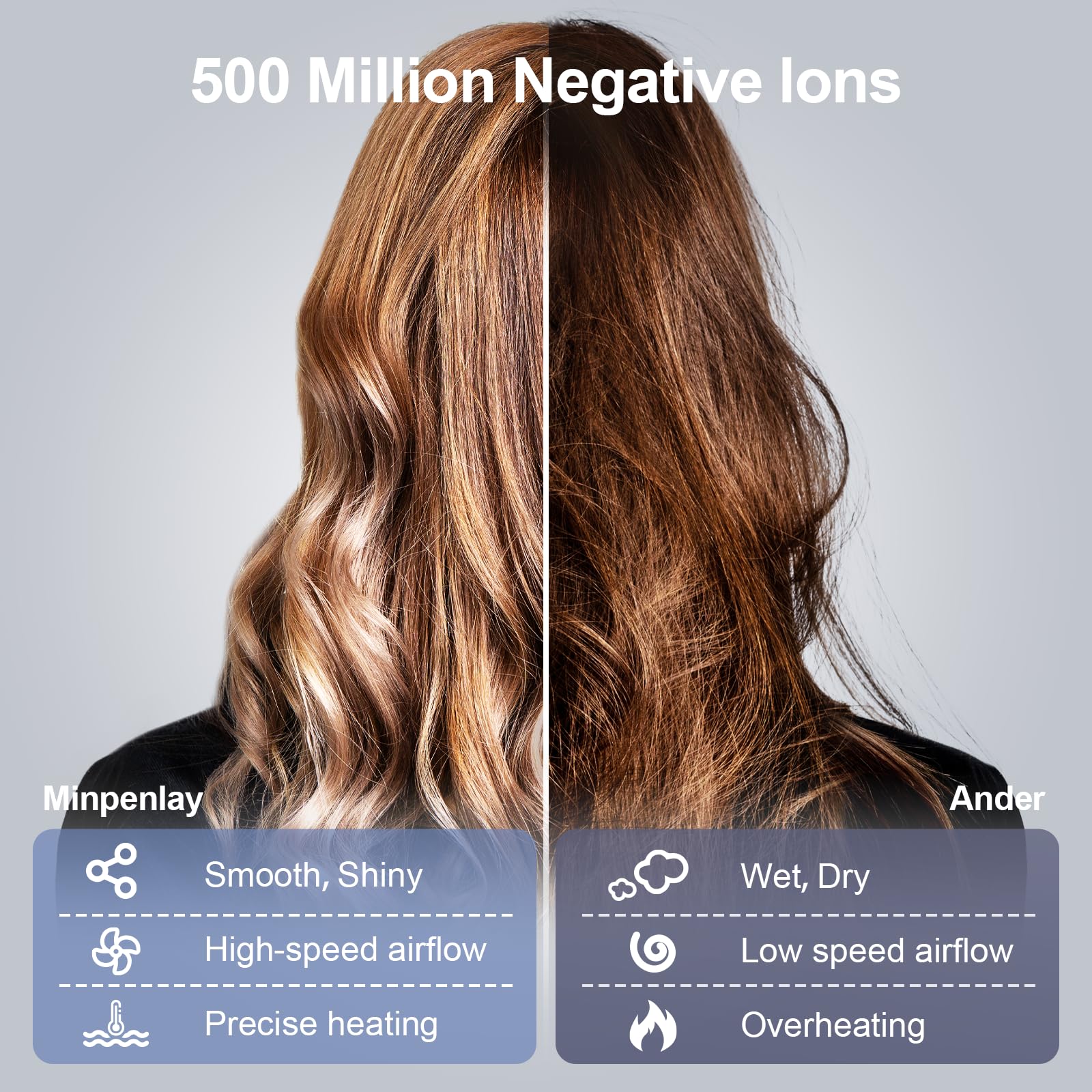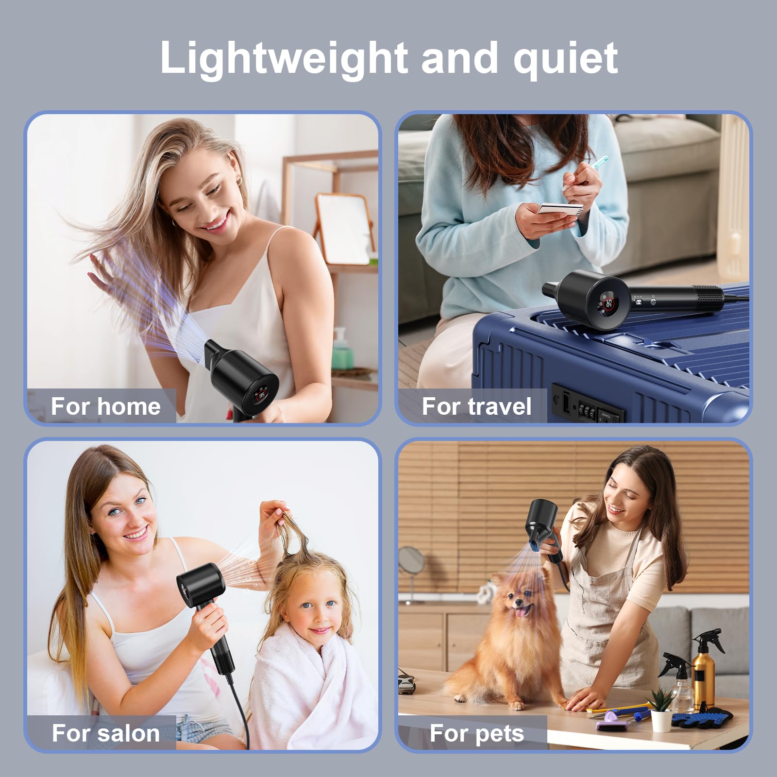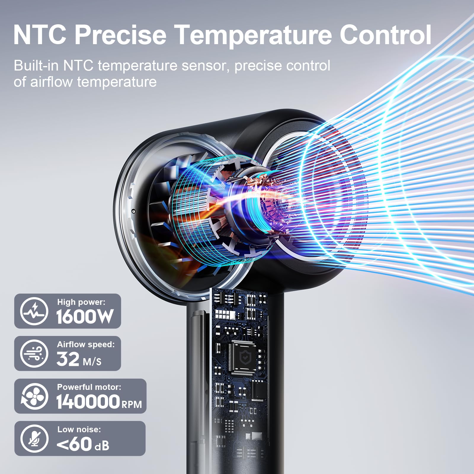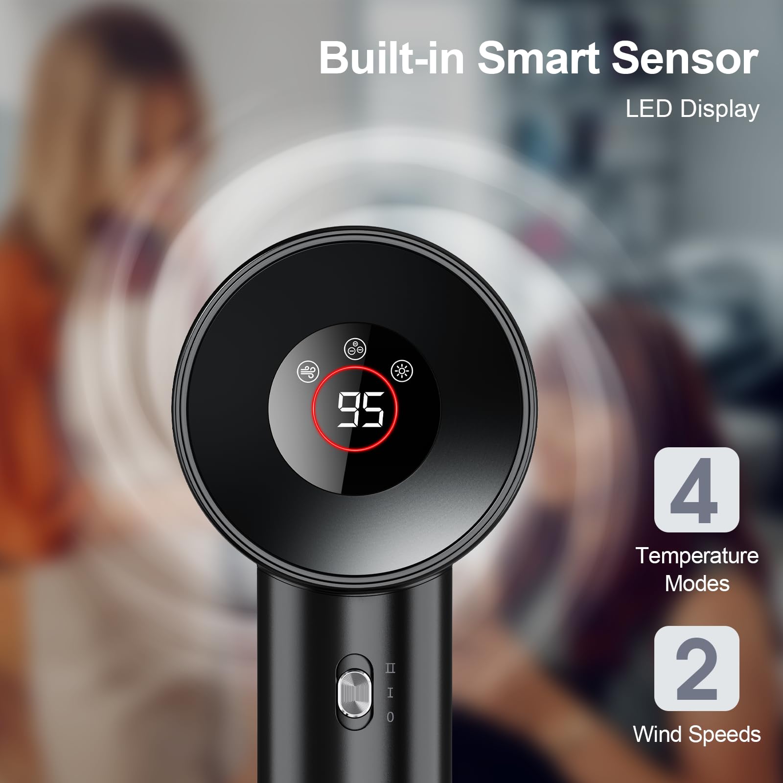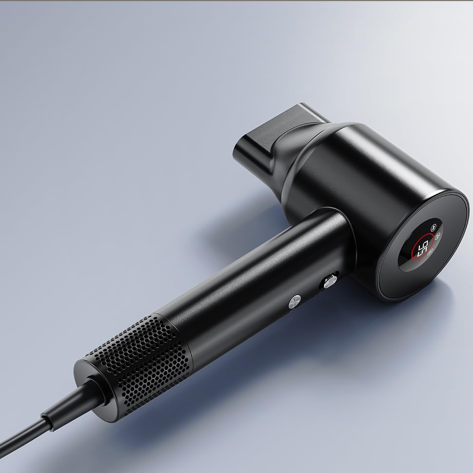 Föhn Ionen Haartrockner, YAIAWISU Ionen Föhn, 140.000 U/min bürstenloser Motor für schnelles Trocknen - LED-Display, 500 Millionen Negativ Ionen Haartrockner für Zuhause, Reisen und Salon (Black)