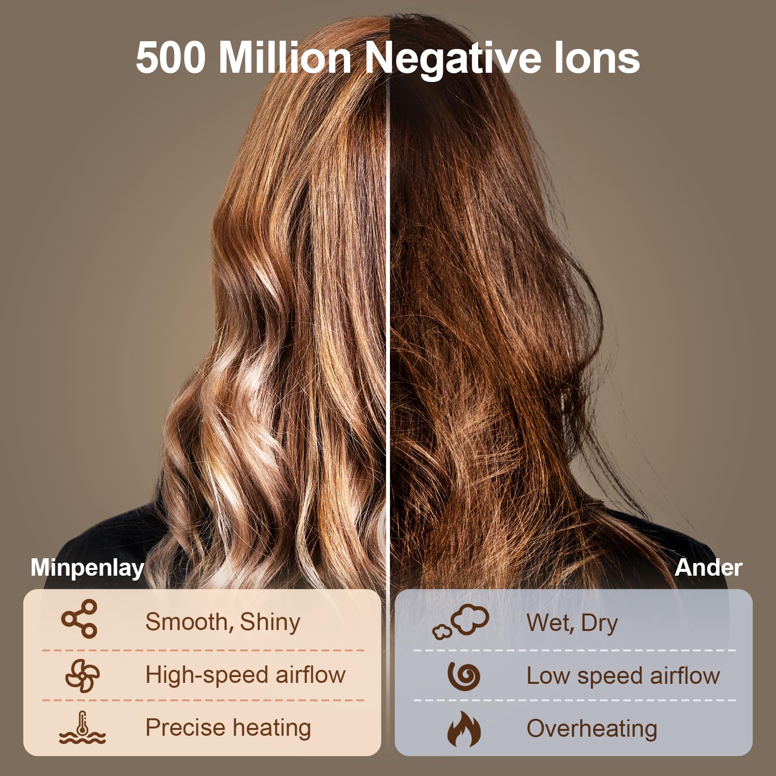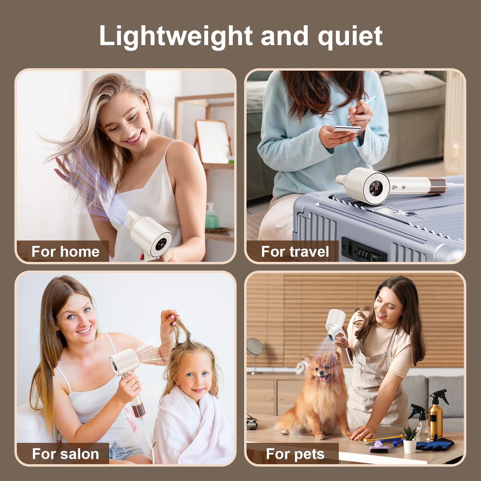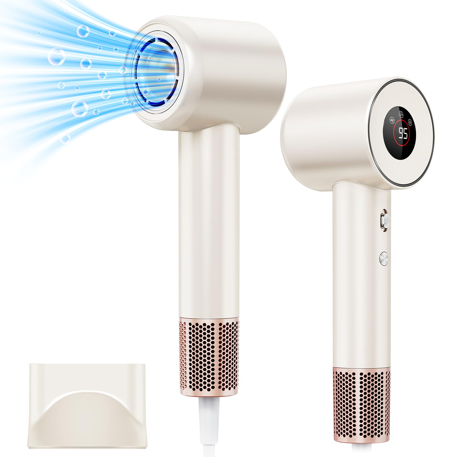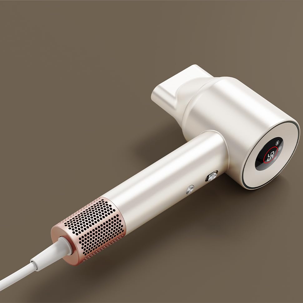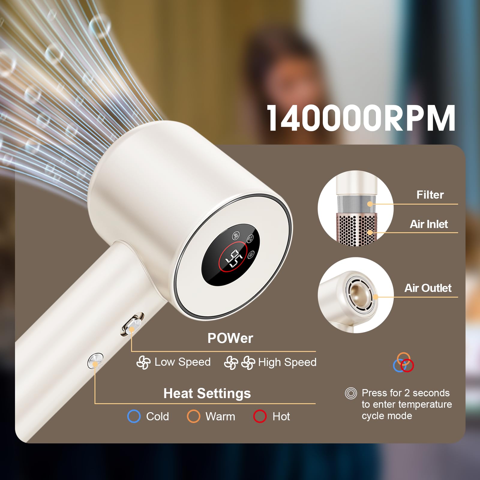Föhn Ionen Haartrockner, YAIAWISU Ionen Föhn, 140.000 U/min bürstenloser Motor für schnelles Trocknen - LED-Display, 500 Millionen Negativ Ionen Haartrockner für Zuhause, Reisen und Salon (Beige)