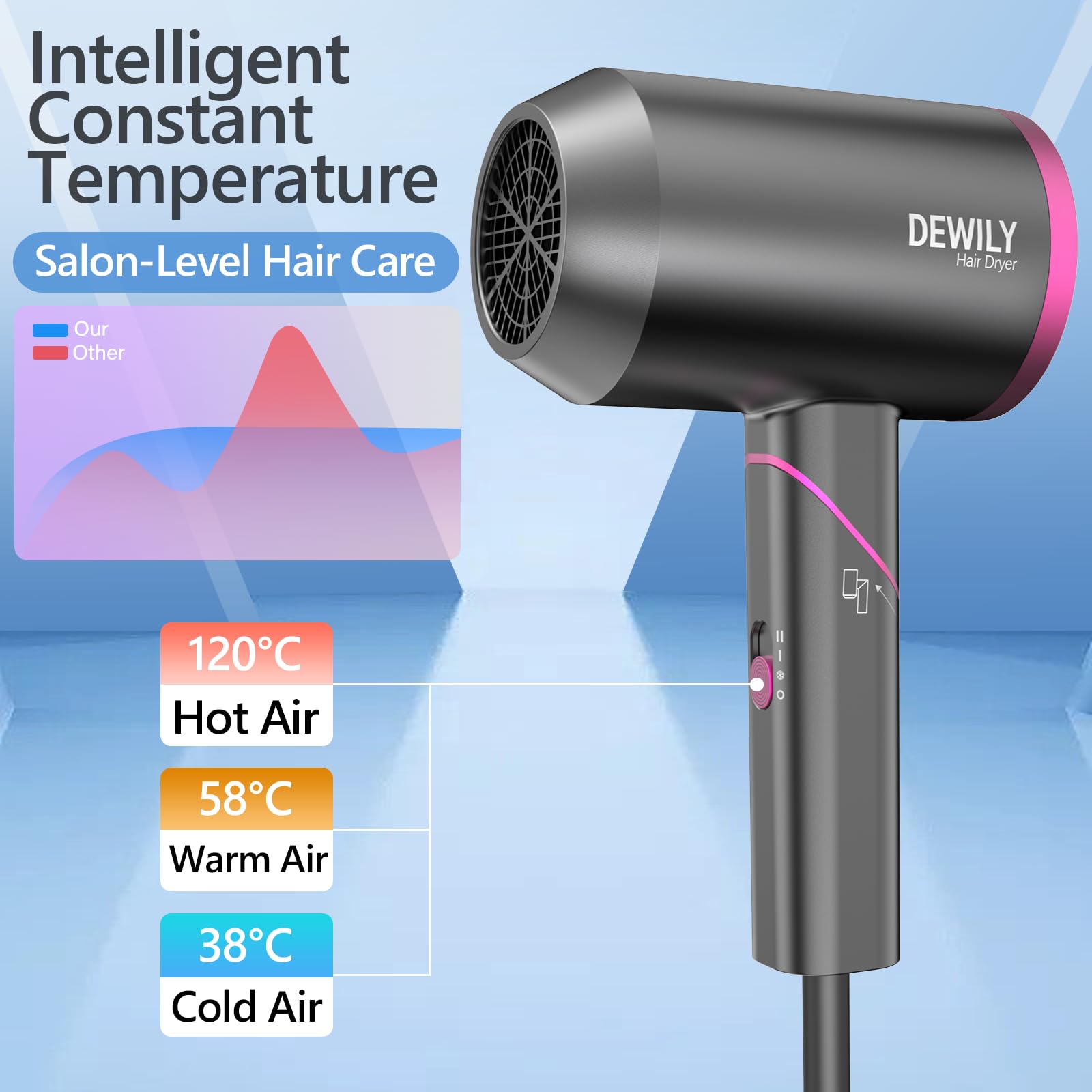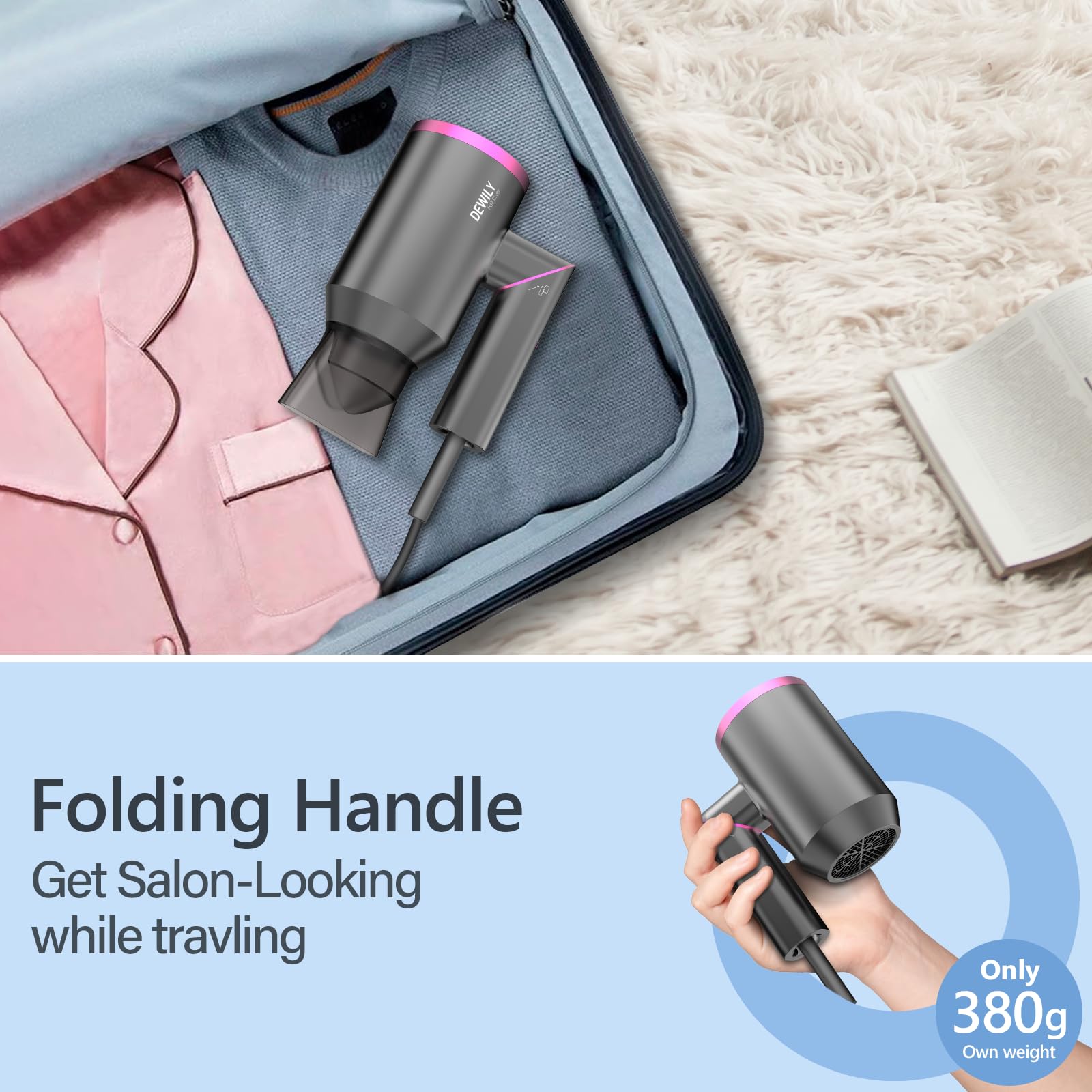 Föhn Ionen Haartrockner mit Diffusor - DEWILY Reisefön Klappbar Klein,Haarföhn lockenföhn leise, Fön, Hair Dryer mit 3 Heizstufen (Grau – 2 Düsen)