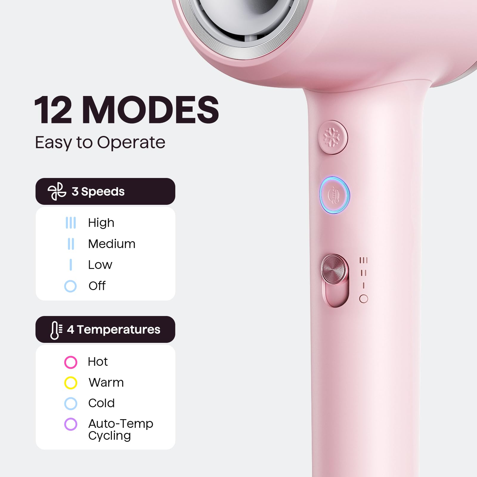 Föhn, Wavytalk TURBLOW PRO Schnelles Trocknen Föhn mit Diffusor, Haartrockner mit Hochgeschwindigkeit 110.000 U/min, Pro Negative Ionen Fön zur Schadensreduzierung, Frizz-Glättung, Pink