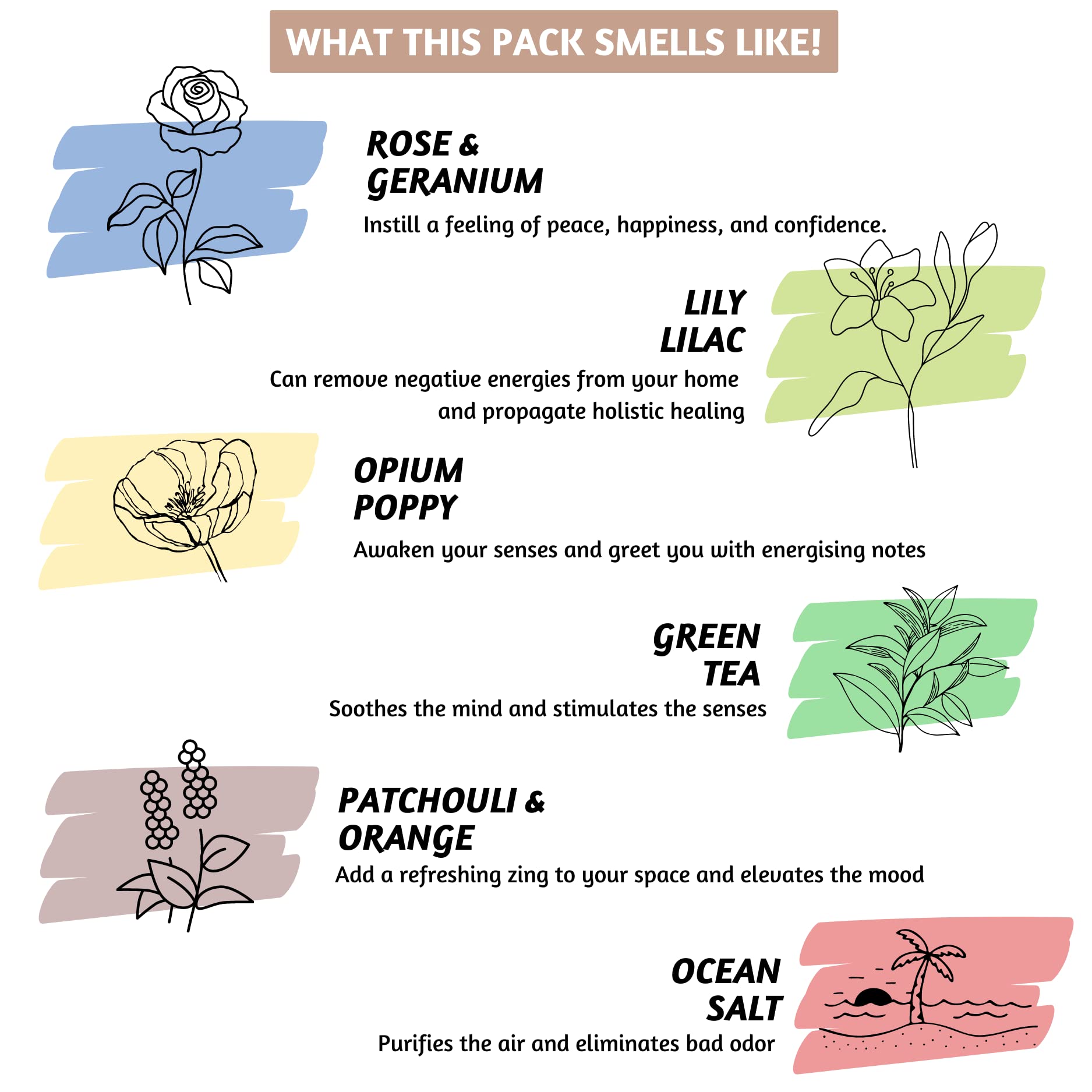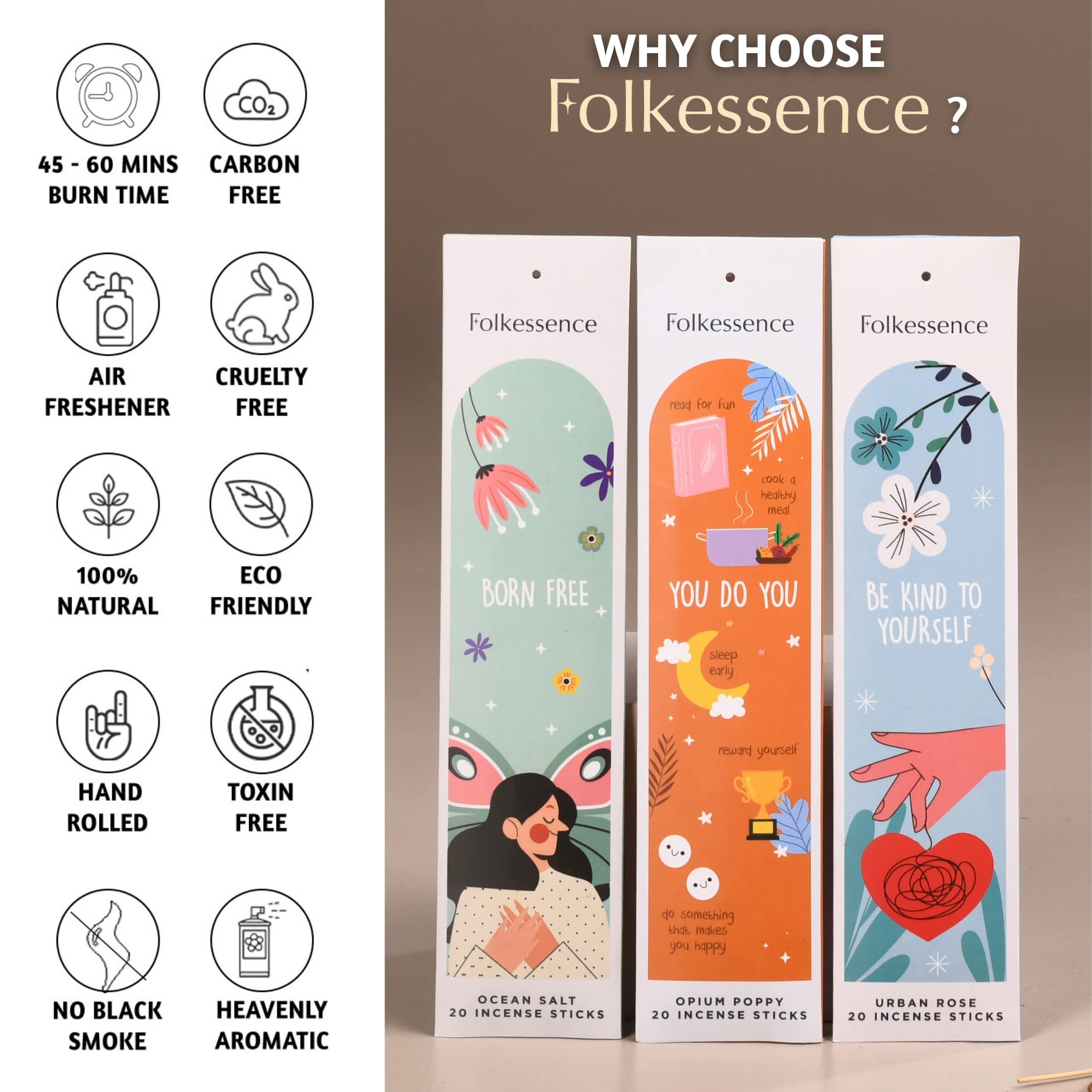 Folkulture Incense Sticks for Home | 6er-Set (120 Räucherstäbchen) zur Entspannung | Grüner Tee, Rose und Geranie, natürlich und ungiftig | Organische und langsam brennende Düfte als Boho-Geschenk