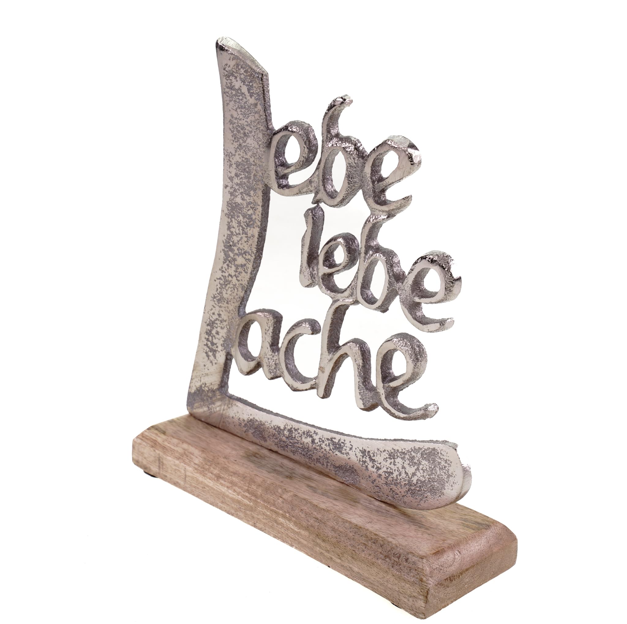 formano Schriftzug Lache Liebe Lebe aus Aluminium/Mango Holz Deko Aufsteller Tischdeko Wohndekoration (18cm)