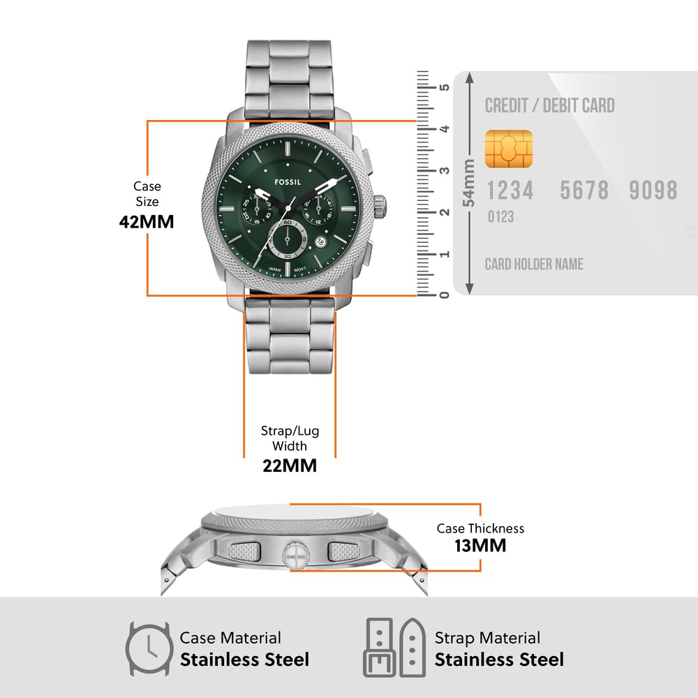 Fossil Machine Uhr für Herren, 42mm Quarz-Chronographenwerk mit Edelstahl- oder Lederarmband