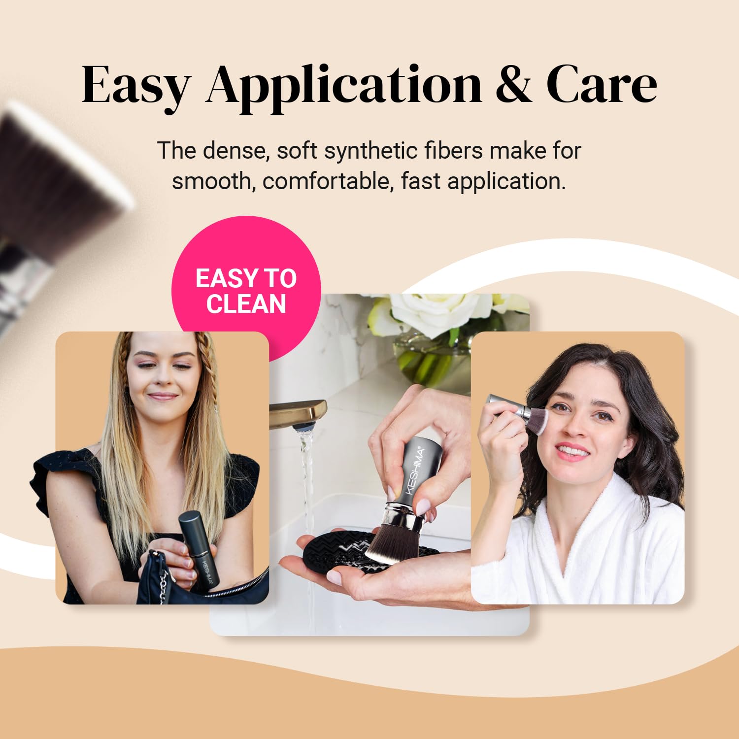Der Keshima Premium Foundation Pinsel ist die ideale Wahl fuer alle, die Wert auf ein gleichmaessiges, professionelles Make-up-Ergebnis legen – im Alltag wie auch beim anspruchsvollen Styling.