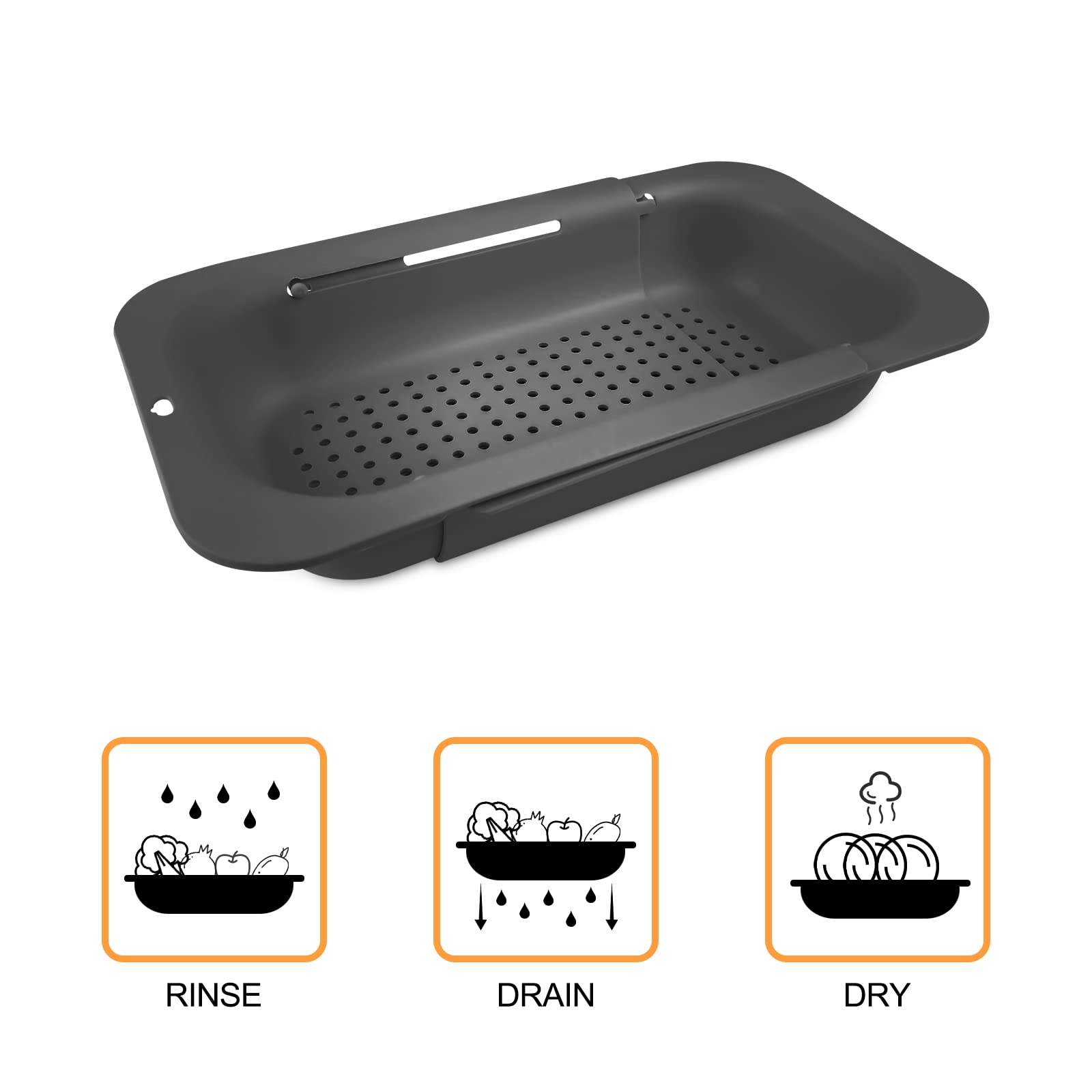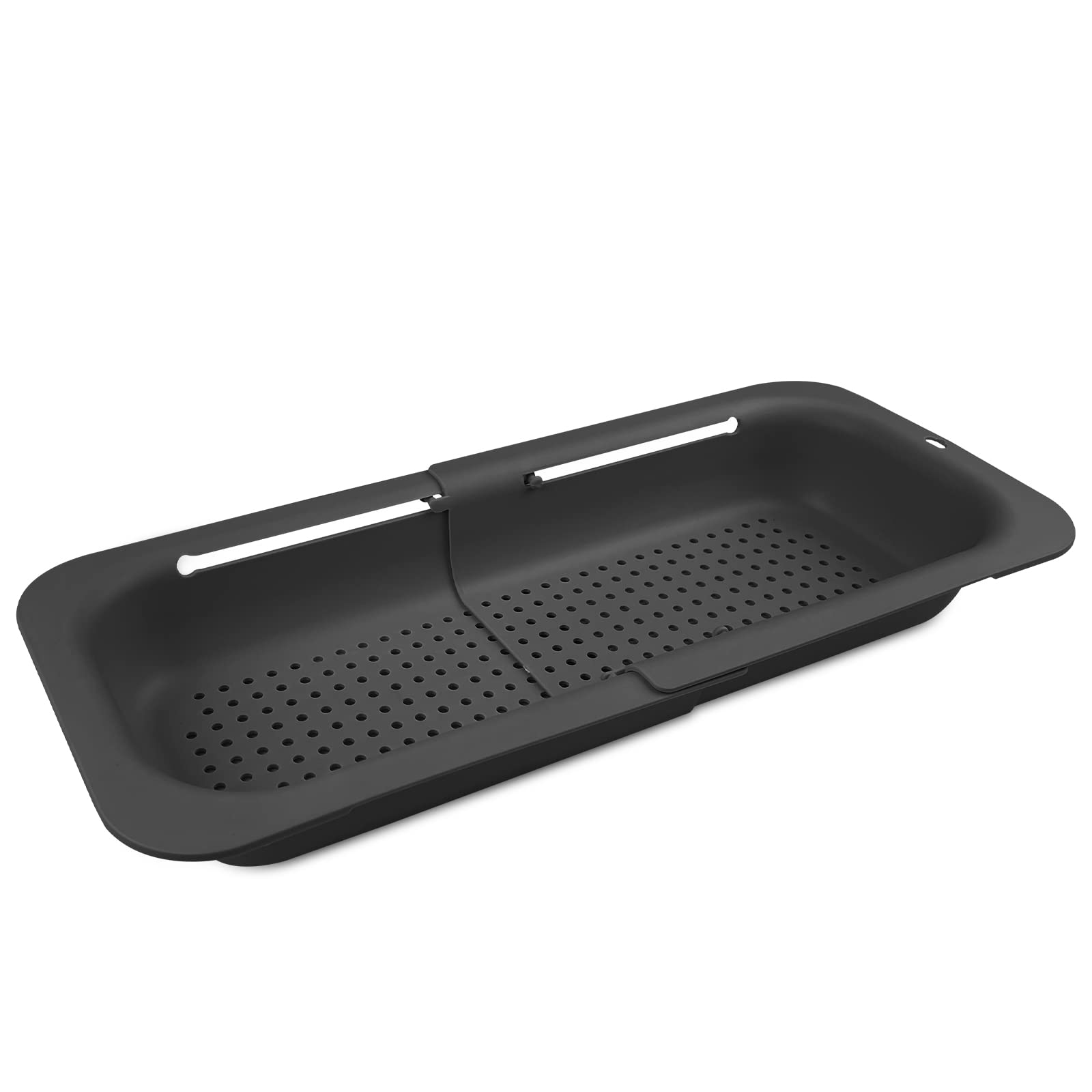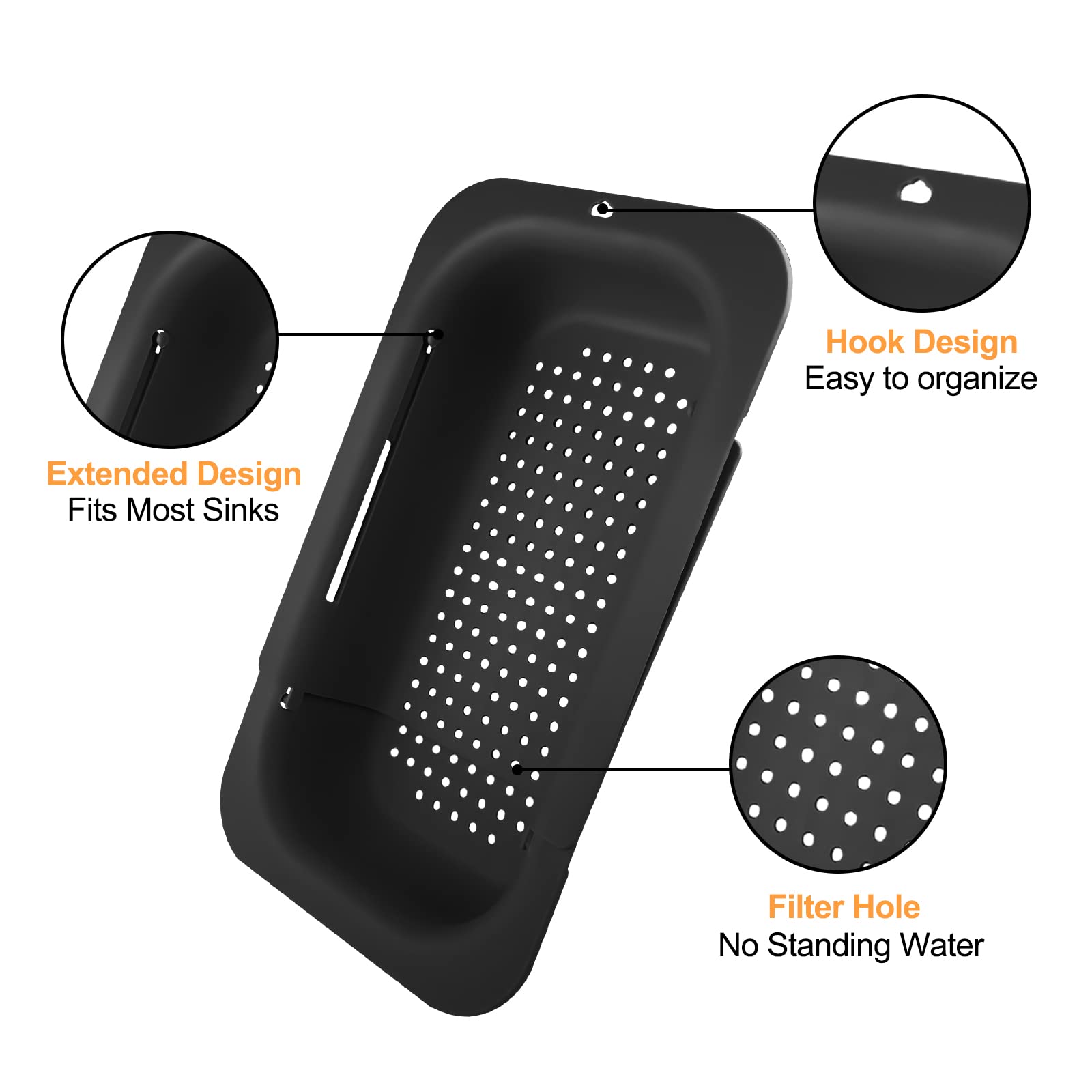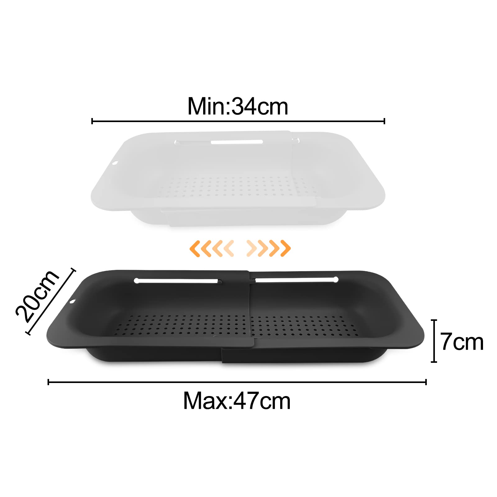 Fousenuk Ausziehbar Siebkorb Über der Spüle Schwarz, Sieb für Spülbecken (36-49cm), Waschbecken Filterablage, Erweiterbares Küchensieb, Spüle Seiher, Spüle Abtropfsieb für Spülen, Abtropfen, Auftauen