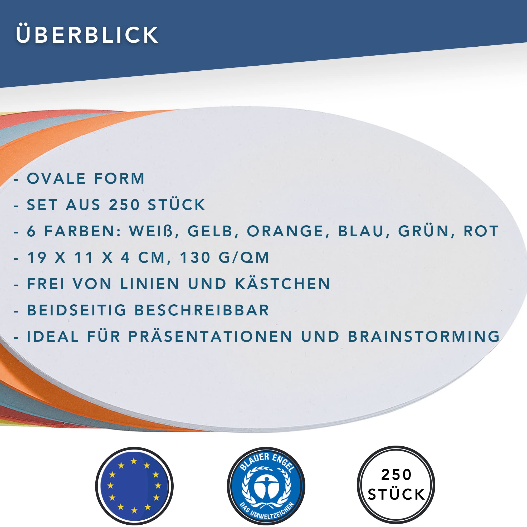 FRANKEN Moderationskarten Oval, 190 x 110 mm, sortiert, 250 Stück, farblich sortiert, UMZH 1119 99