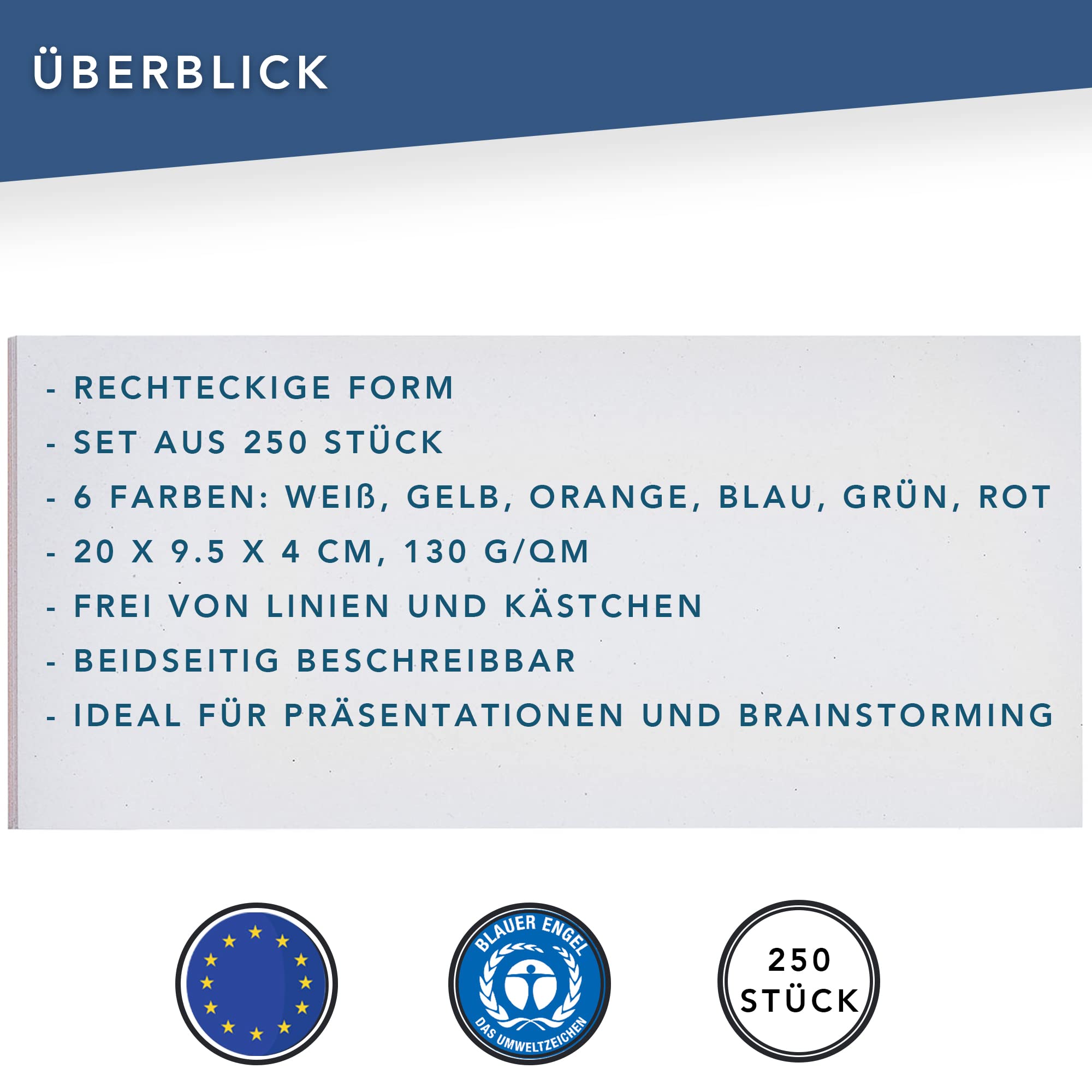 FRANKEN Moderationskarten Rechteck, 205 x 95 mm, sortiert, 250 Stück, farblich sortiert, UMZH 1020 99