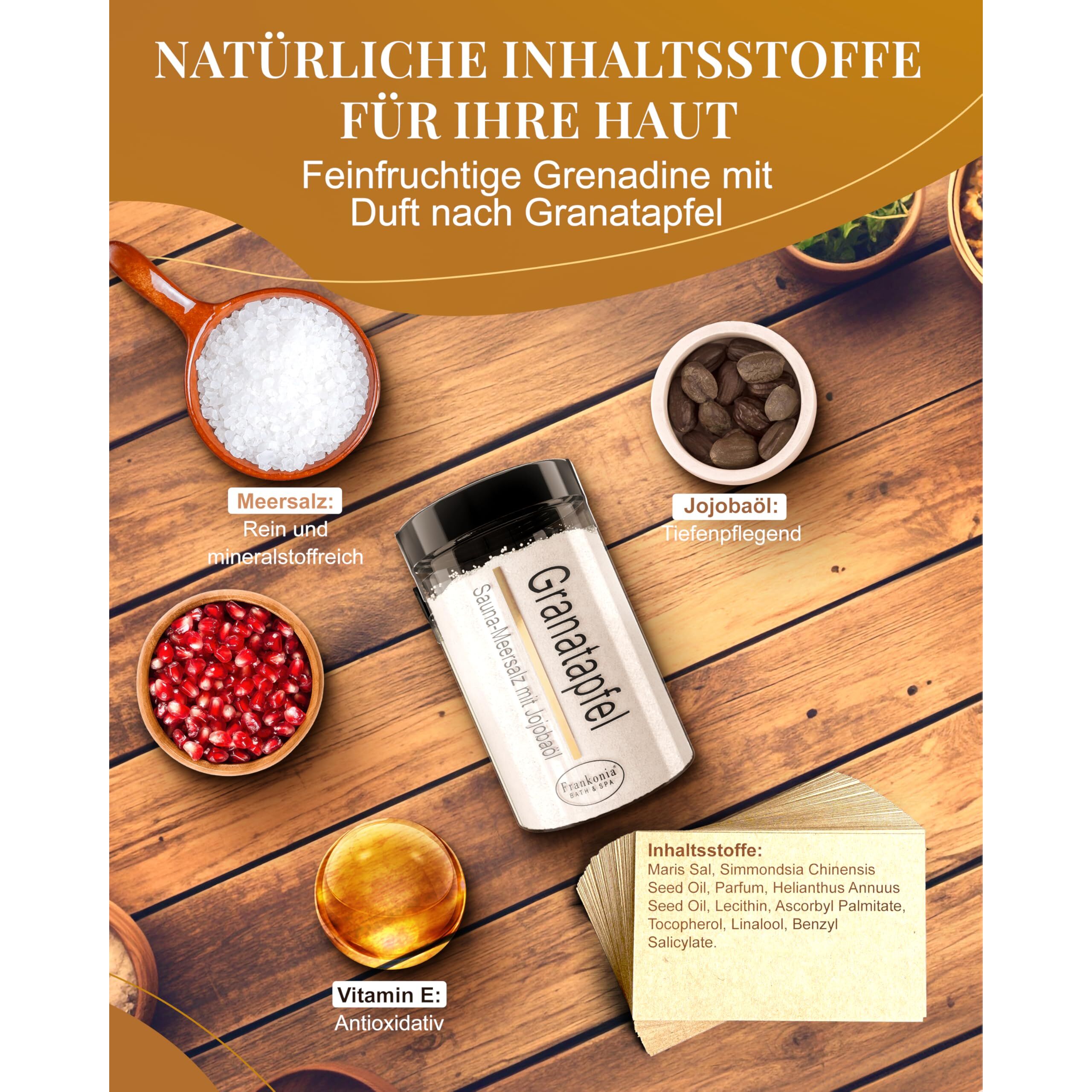 Frankonia BATH & SPA Sauna Salz Peeling Granatapfel – 400g Meersalz-Körperpeeling mit Jojobaöl & Vitamin E, Vegan, Ohne Parabene, Ohne Microplastik
