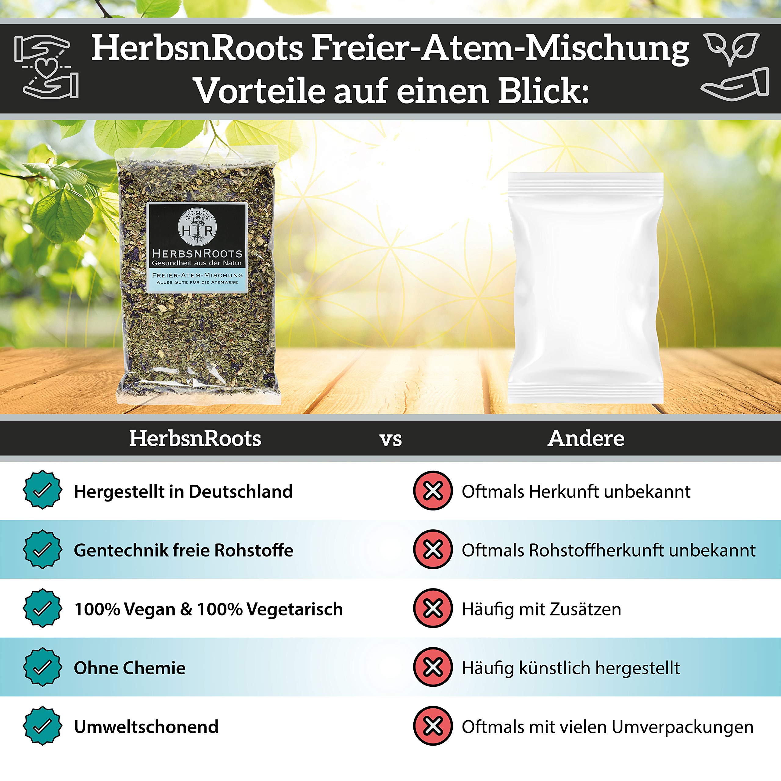 • ✅ SWISS QUALITY - MADE IN GERMANY - 100% Natur: Vertraue auf die Qualität unserer Freier Atem Teemischung, Erlebe die wohltuende Wirkung und unterstütze deine Atemwege auf natürliche Weise.