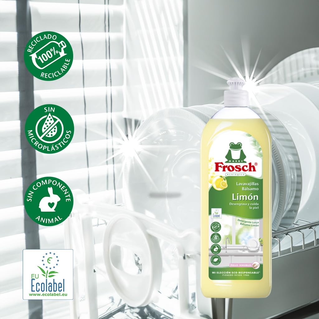 Entdecken Sie die Handspülmaschine, Zitronenbalsam von Frosch, macht das Geschirr sauber und glänzend. Dank seiner Formel mit Zitronenschalenextrakten ist er ein hochwirksamer Reiniger gegen Fett und Schmutz. Dermatologisch getestetes Produkt, schützt die Haut vor Austrocknung. Frosch ist die bahnbrechende Marke in der Entwicklung umweltfreundlicher Produkte, die 1986 in Deutschland gegründet wurde. Unsere Produkte, die unter Kriterien der Nachhaltigkeit und Ökologie hergestellt werden, sind die ersten phosphatfreien Reiniger. 2017 hat sich die Marke in Spanien unter Beibehaltung der Qualität und Wirksamkeit der Produkte durchgesetzt. Frosch