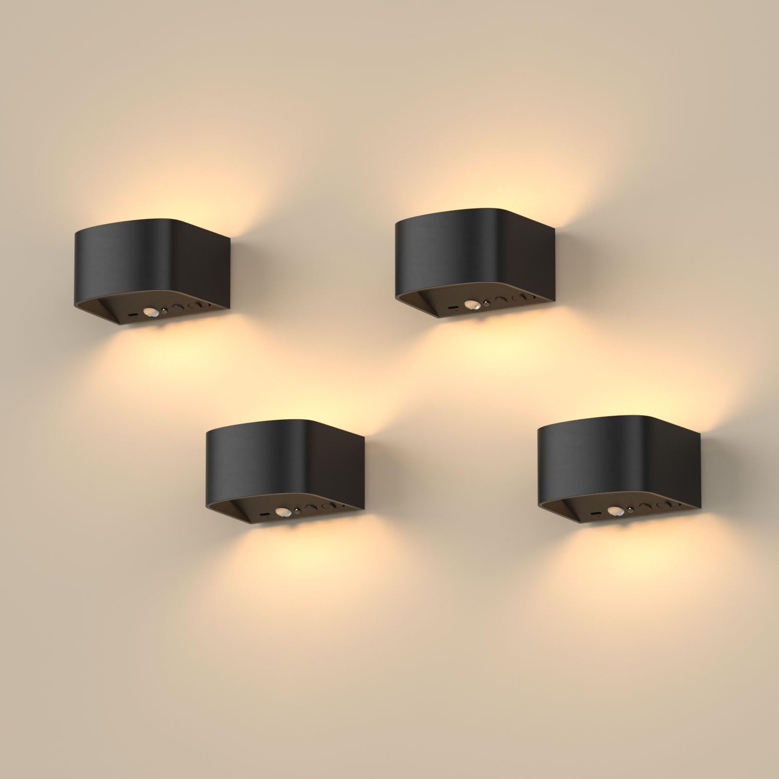 FULEN 4 Stück Akku Wandlampe Innen mit Bewegungssensor,Fernbedienung 3 Farben Wandlicht Up and Down Innen LED Wandleuchte 3 Modi Wiederaufladbare Batteriebetriebene Wandlampen Helligkeit Einstellbar