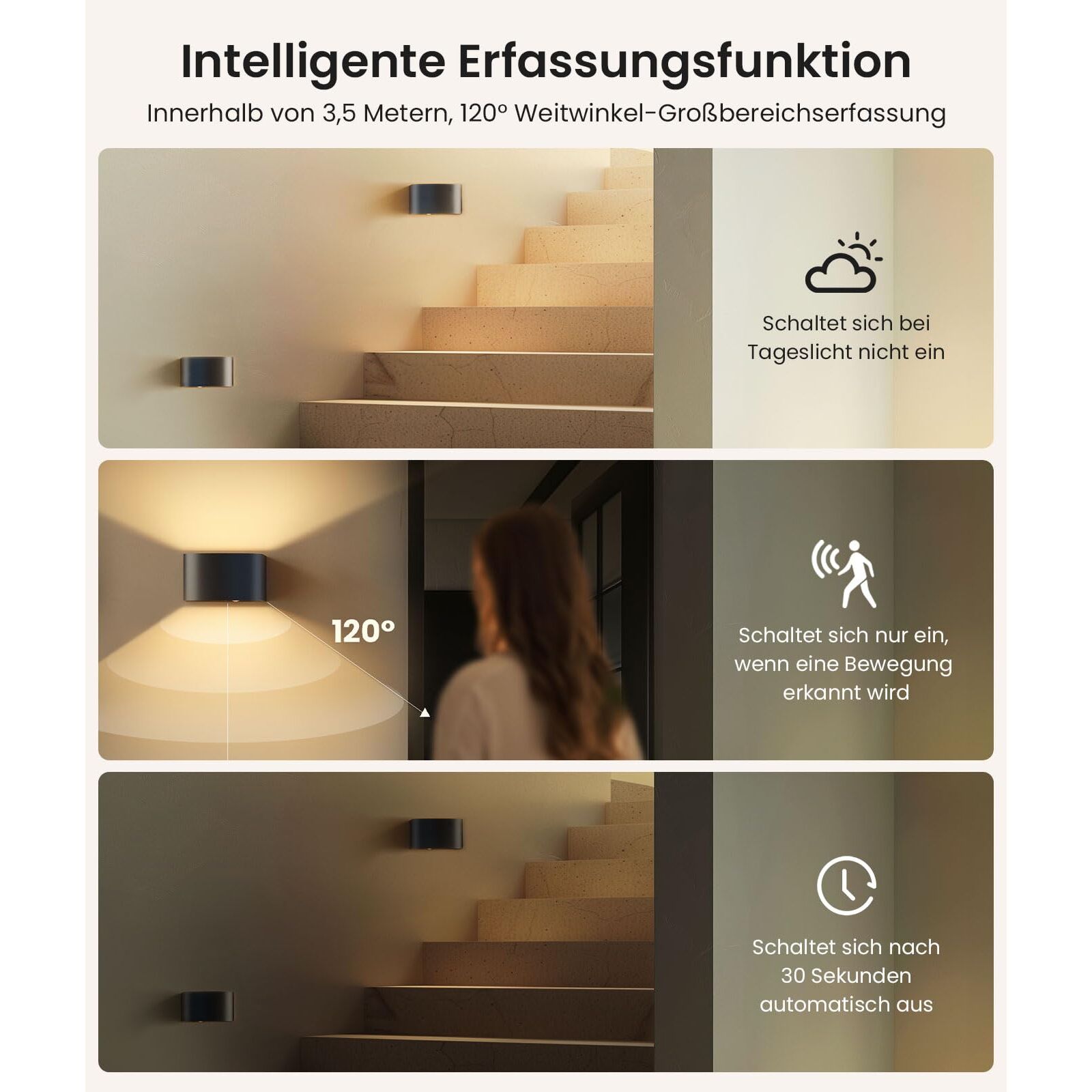 FULEN Akku Wandlampe Innen mit Bewegungssensor,Fernbedienung 3 Farben Wandlicht Up and Down Innen LED Wandleuchte 3 Modi Wiederaufladbare Batteriebetriebene Wandlampen Helligkeit Einstellbar 1 Stück