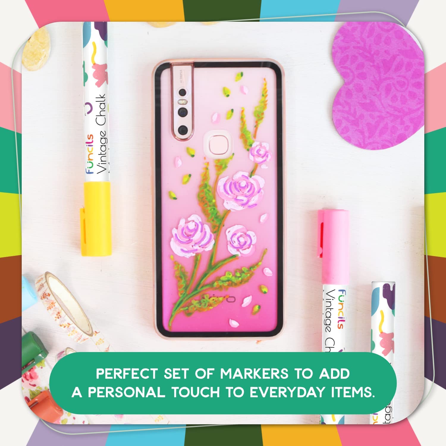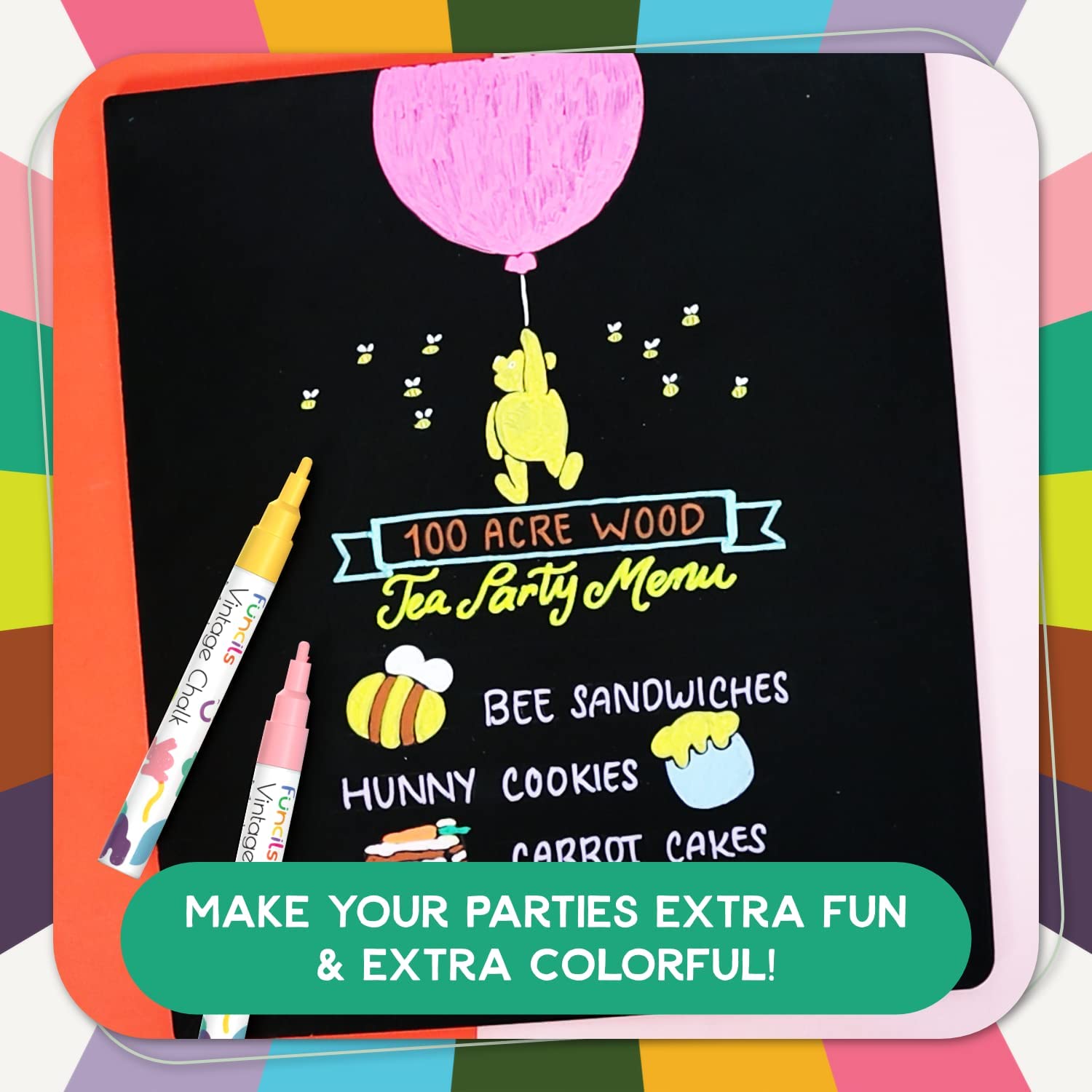 Funcils Vintage Kreidestifte für Tafel Abwaschbar - 10 Kreidemarker Pastell 3mm Umkehrbare Spitze - Kreide Stift für Fenster, Tafel und als Glasstift. Chalk markers für Erwachsene & Kinder