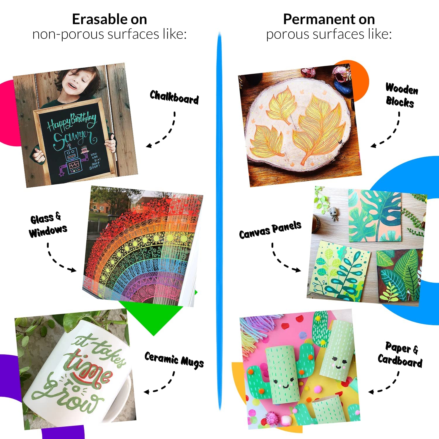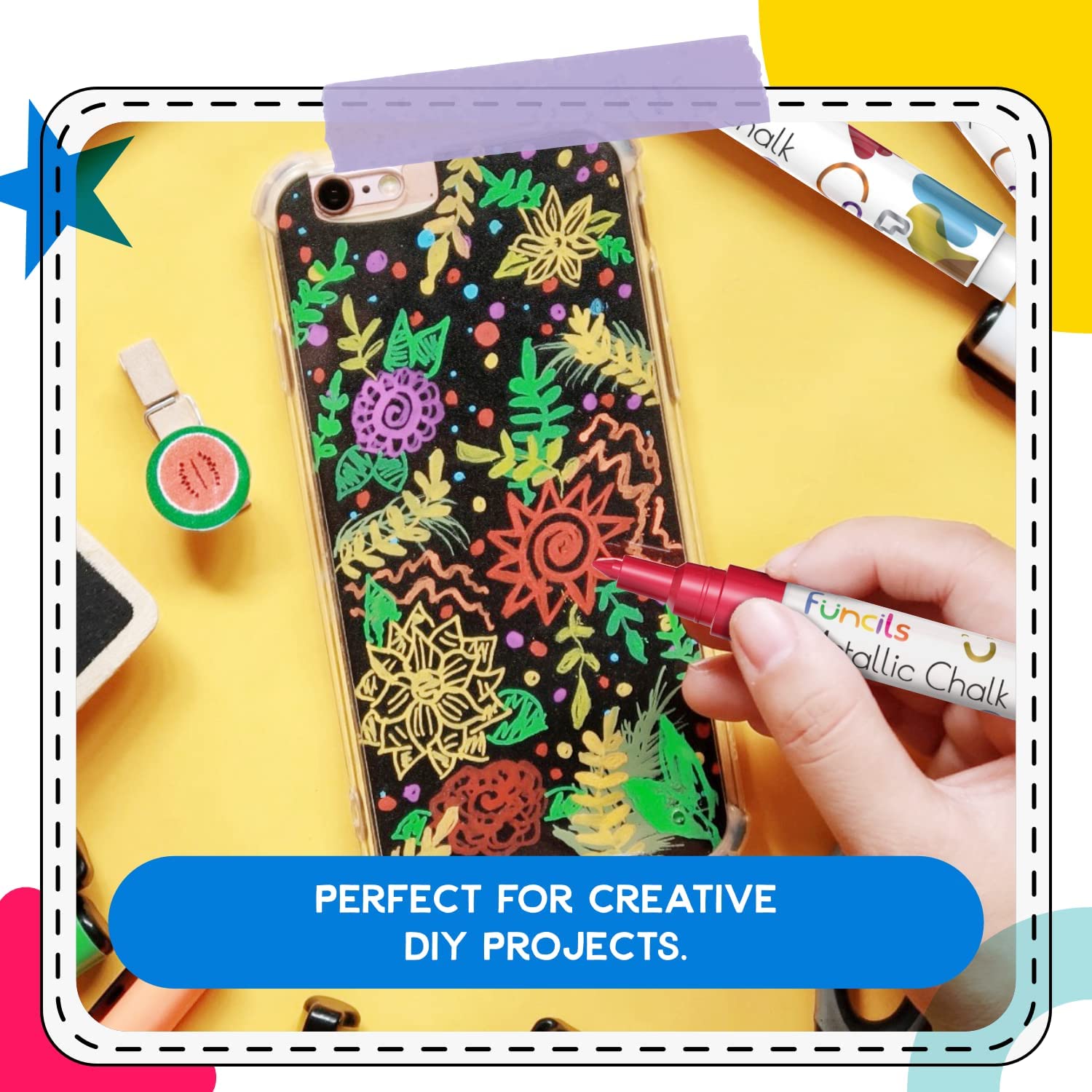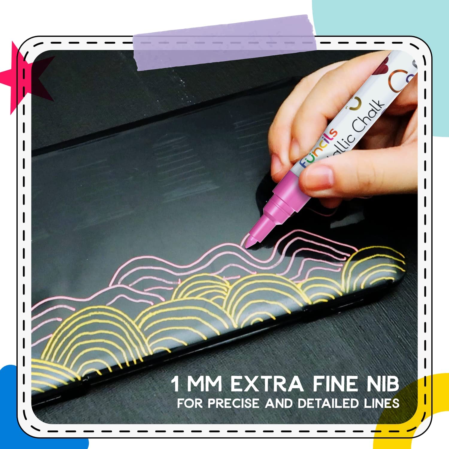 Funcils Kreidestifte für Tafel Abwaschbar | 10 Metallic Stifte 1mm Extra Feine Spitze | Kreide Stift für Fenster, Tafel, Whiteboard & als Glasstift. Chalk markers für Erwachsene & Kinder
