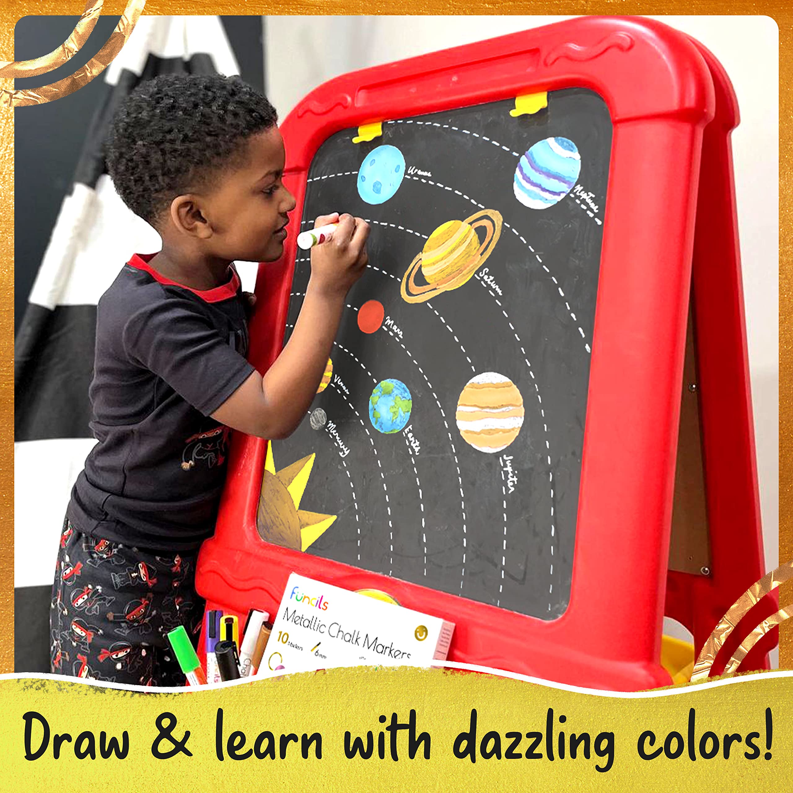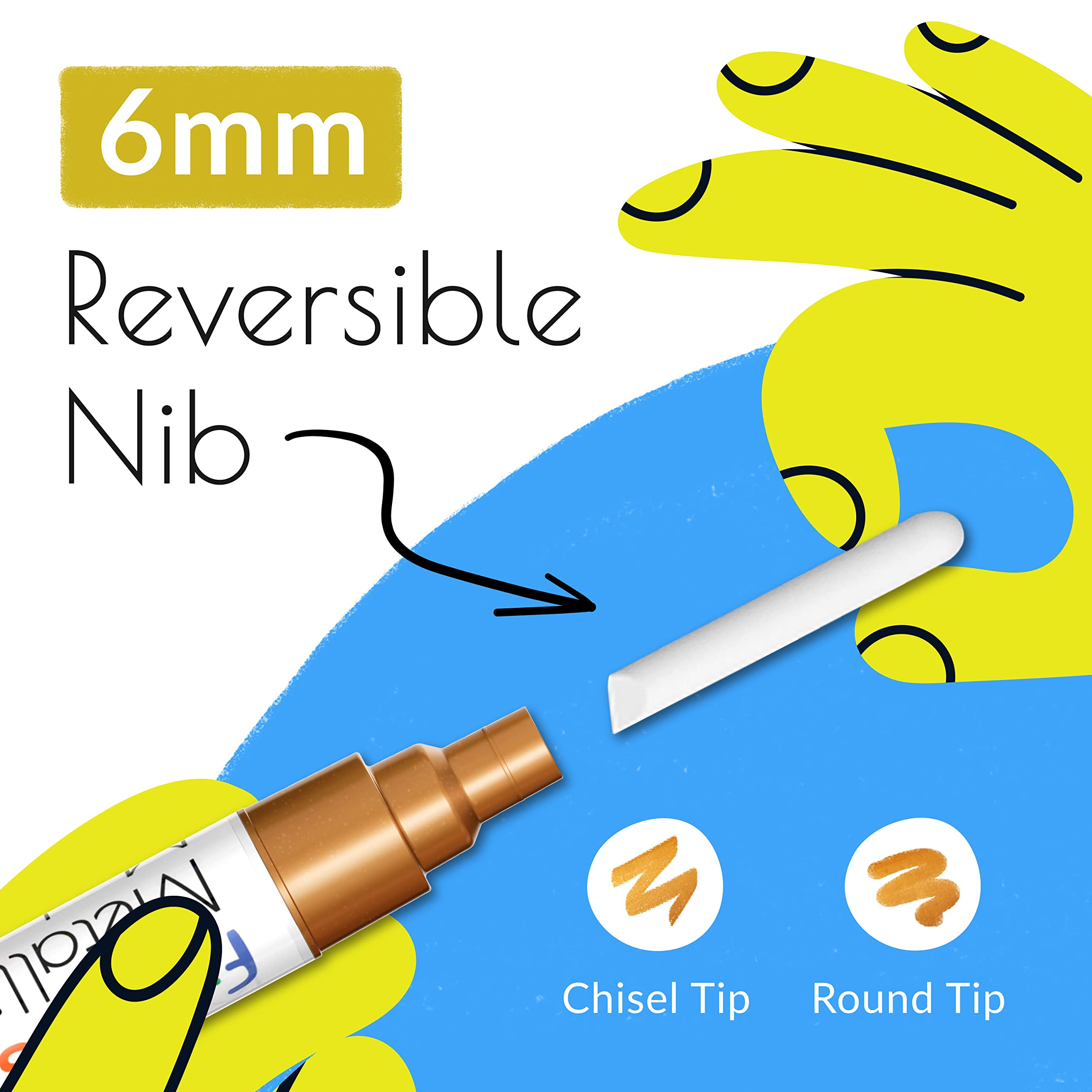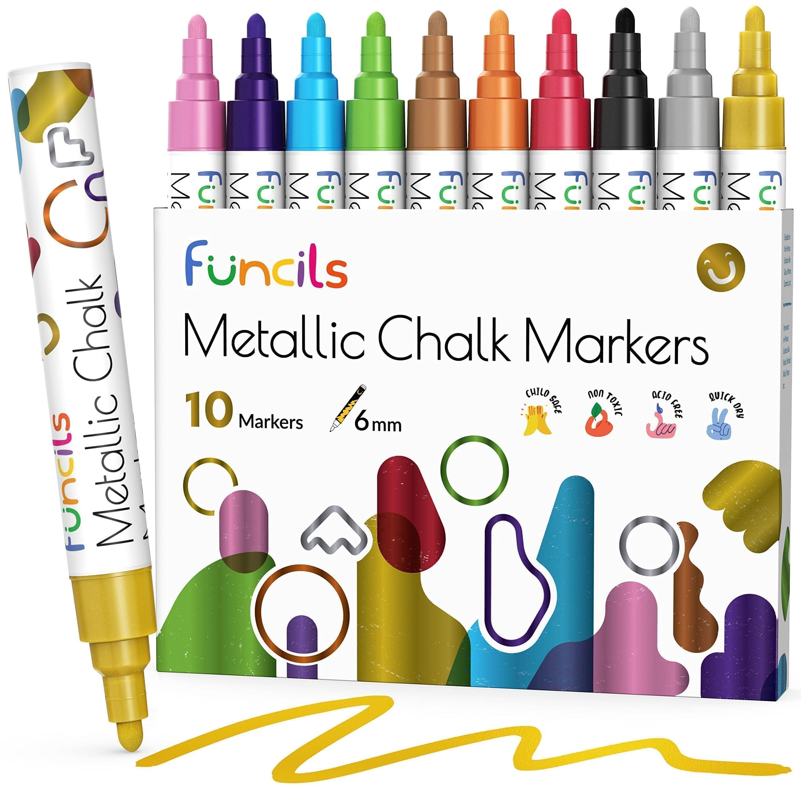 Funcils Kreidestifte für Tafel Abwaschbar - 10 Metallic Stifte mit 6mm Umkehrbare Spitze - Kreide Stift für Fenster, Tafel, Whiteboard und als Glasstift - Chalk Markers für Erwachsene & Kinder
