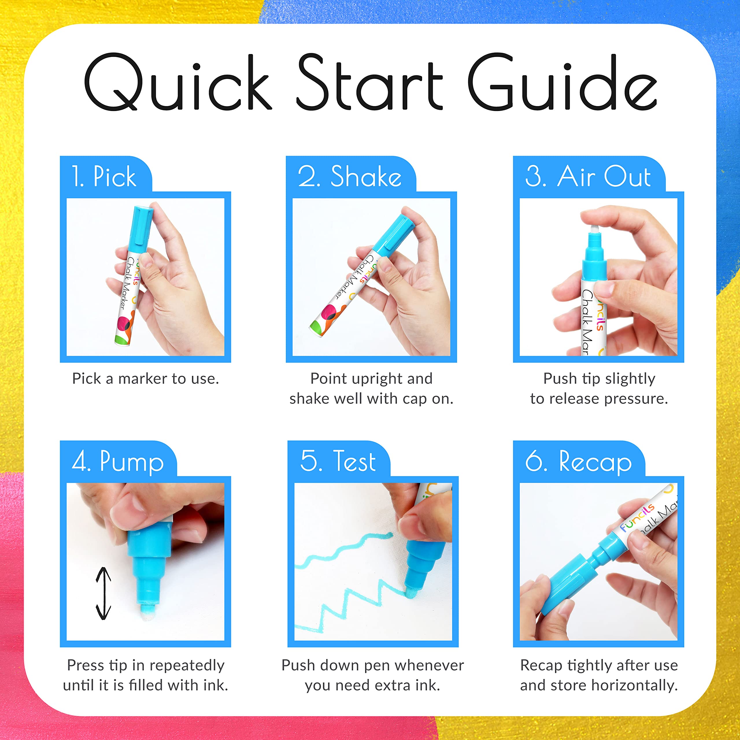 Funcils Metallic Flüssigkreide-Marker (10 Stück) – für Fenster, Etiketten, Bistro, Glas, Auto, Tafel – feucht abwischbar, Farbkreidestifte – 6mm wendbare Spitze