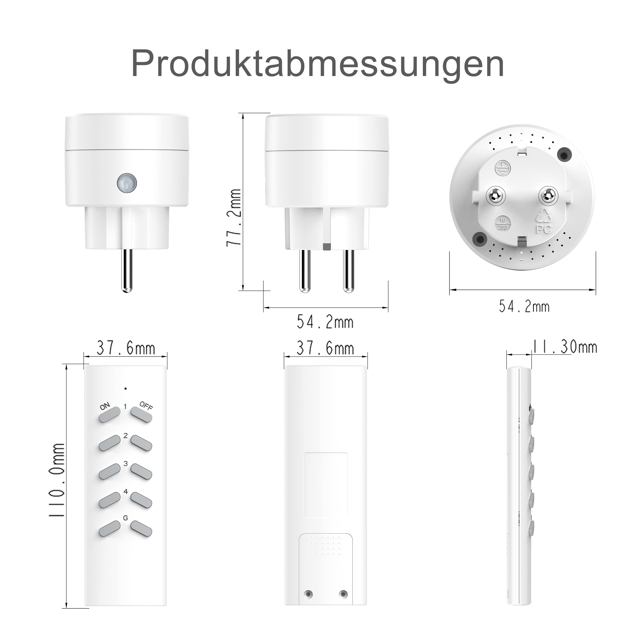 Bei unserem Produkt handelt es sich um ein Funksteckdosen Set mit 5 Funksteckdosen der Marke UCOMEN Dieses Produkt ist für den Einsatz in Innenräumen vorgesehen und arbeitet bis zu 25 Meter entfernt. Ihr Produkt verfügt über eine LED-Statusanzeige, mit der Sie einfach Ihren Status verfolgen können. Die elektrische Spannung beträgt 230 V AC 50 Hz, der maximale Strom beträgt 16 (2) A, die maximale Leistung beträgt 3680 W. Dieses Produkt hat CE- und TÜV-Zertifizierungen und hat eine Garantie von 12 Monaten. Nicht für geeignete Motorkondensatoren und induktive Lasten, bitte beachten Sie dies. Kompatible Geräte: Desktop, Smartphone, Fernseher.