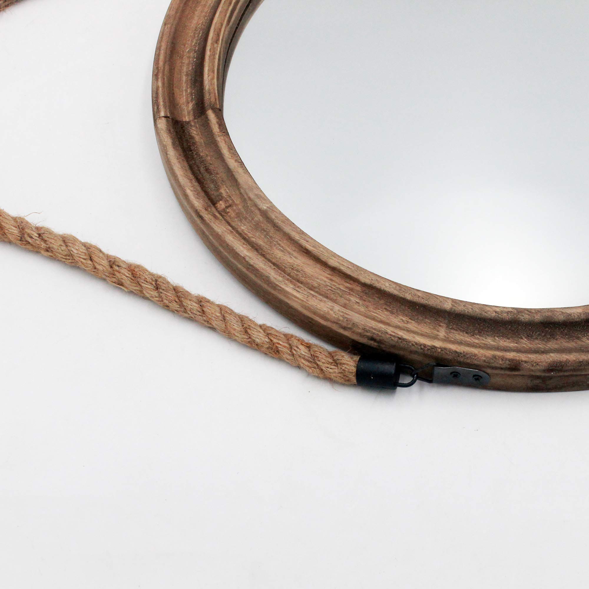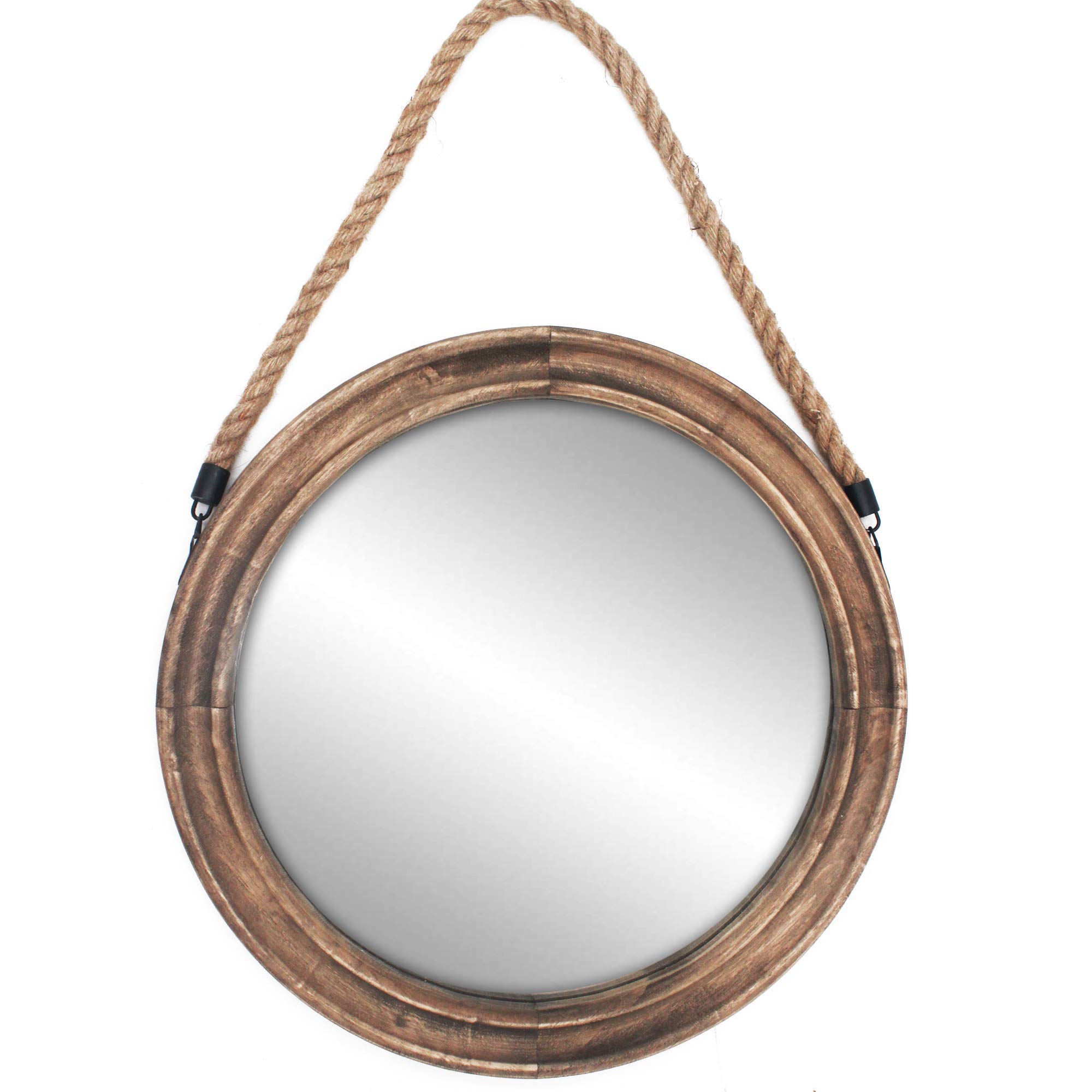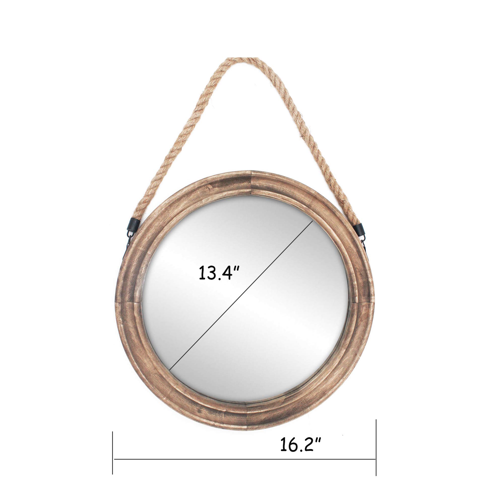 Funly mee Rustikaler runder dekorativer Spiegel mit massivem Holzrahmen und Seil zum Aufhängen, Bauernhaus-antikes Wanddekor