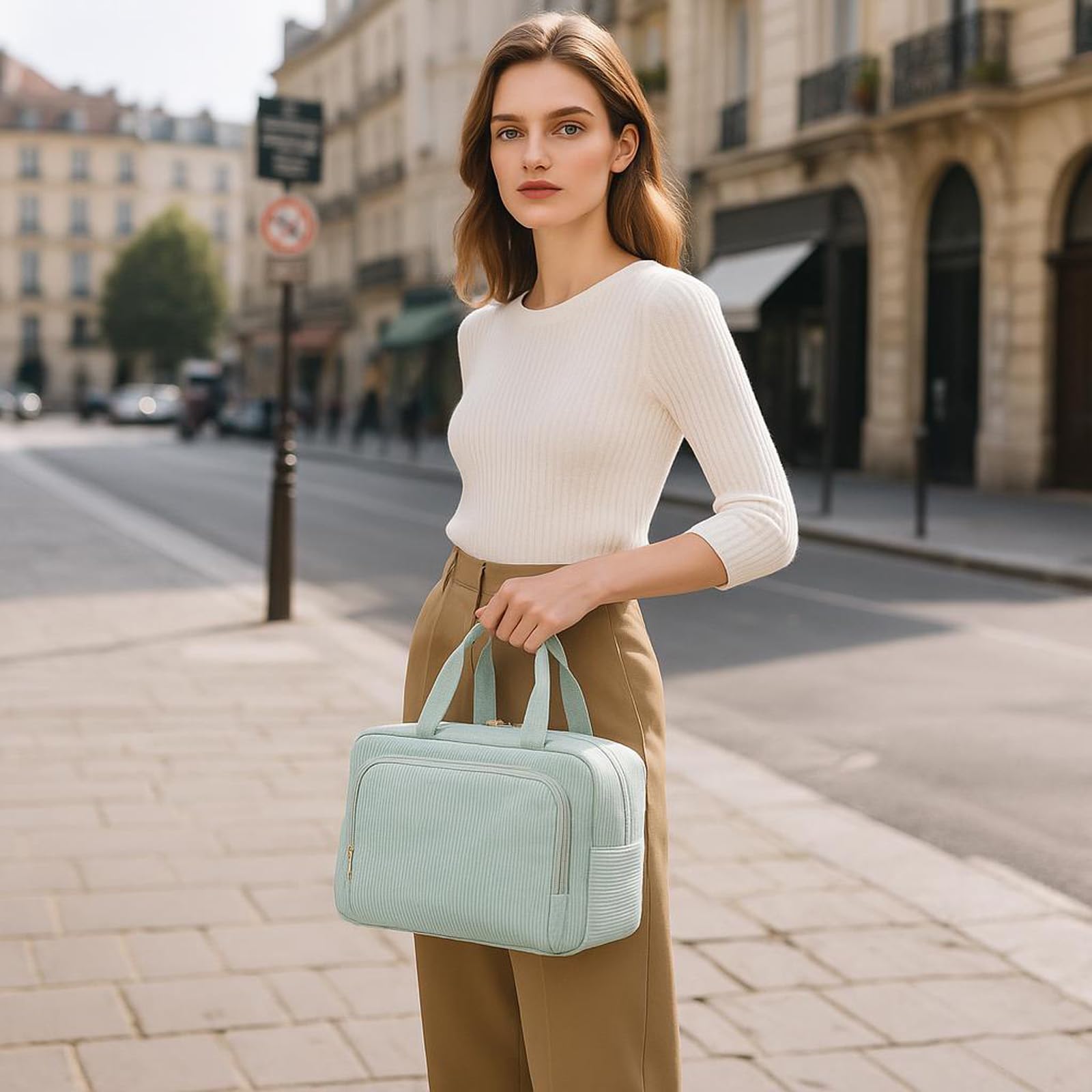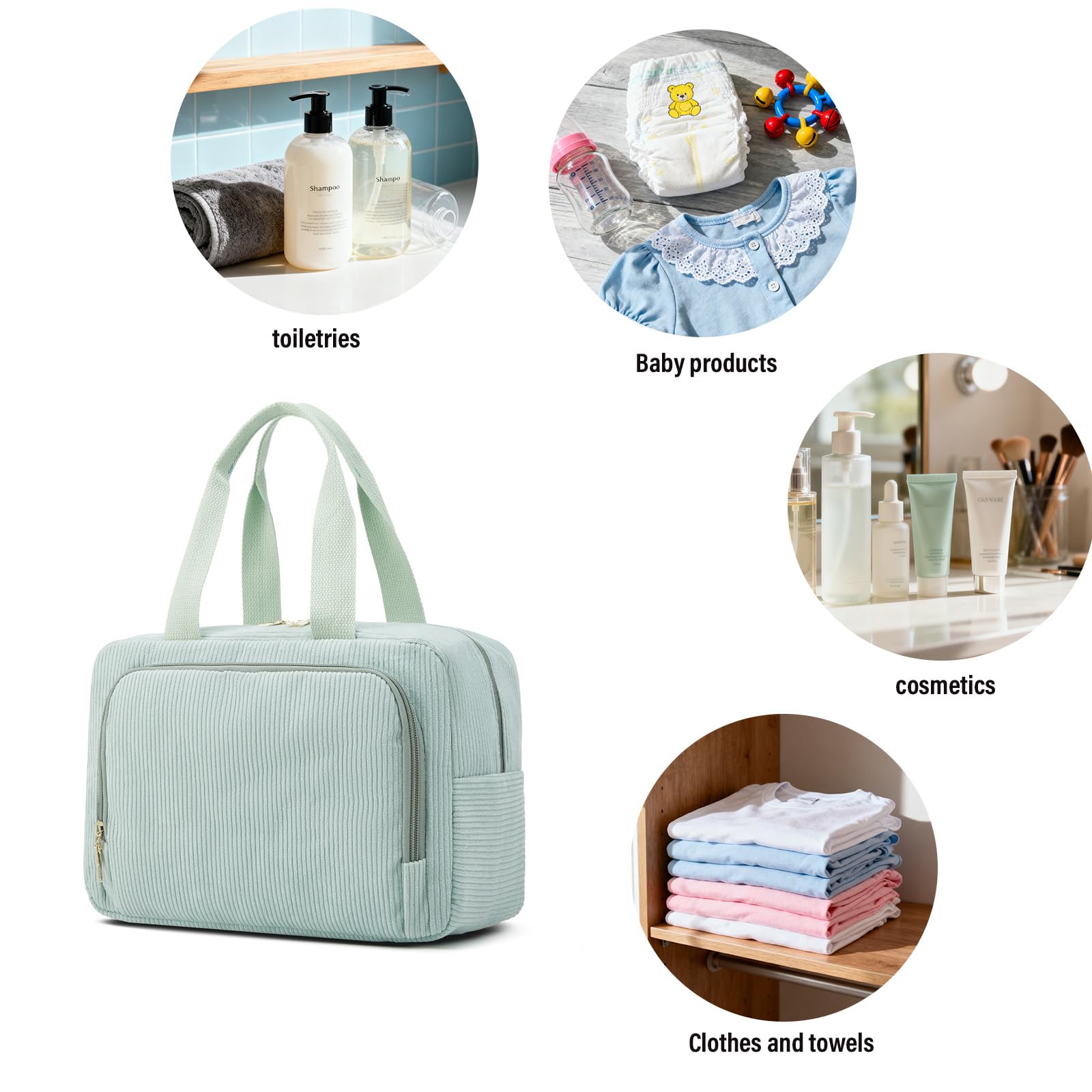 Das elegante grüne Cord-Design verleiht der Kosmetiktasche eine moderne, zeitlose Optik und macht sie zu einem stilvollen Accessoire für Frauen, die Wert auf Ordnung und Design legen. Die Tasche eignet sich nicht nur für den Eigengebrauch, sondern auch hervorragend als Geschenk.