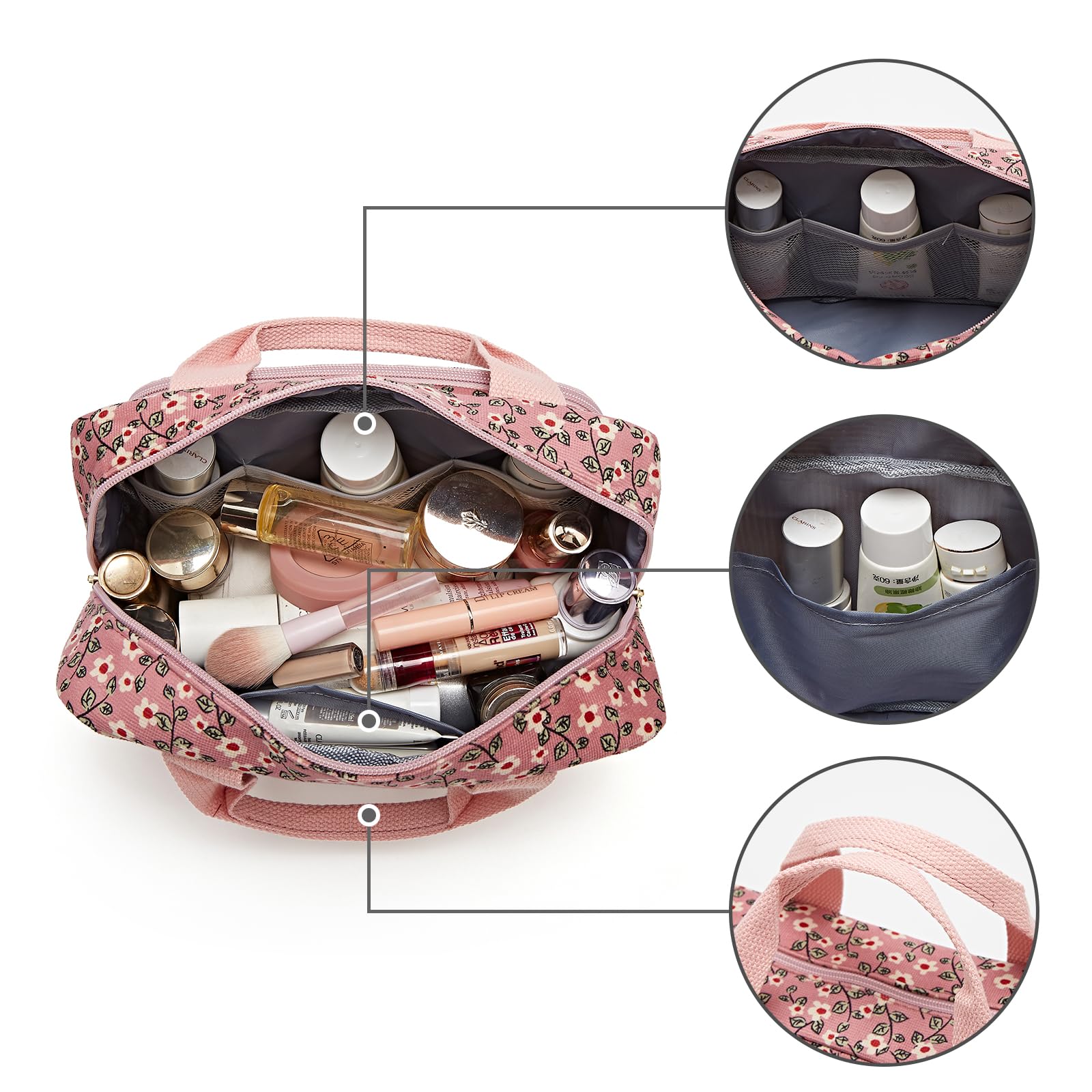 Der grosszuegige Innenraum bietet ausreichend Platz fuer Make-up, Hautpflege, Toilettenartikel und persoenliche Essentials. Dank der praktischen Form bleibt der Inhalt uebersichtlich organisiert und jederzeit griffbereit, egal ob im Badezimmer, im Koffer, im Handgepaeck oder unterwegs.