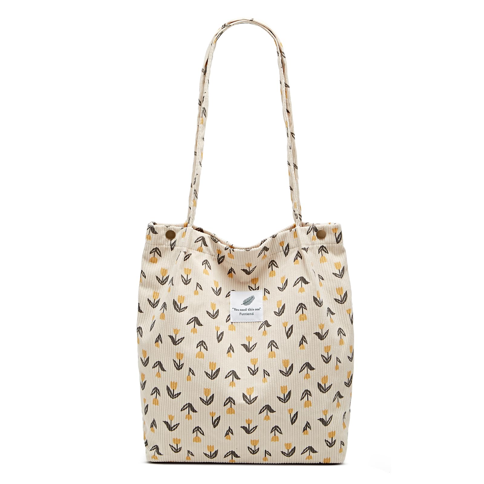 Funtlend Umhängetasche Damen Gross Cord Tasche Damen Handtasche Shopper Damen Henkeltasche für Uni Arbeit Mädchen Schule (Braun
