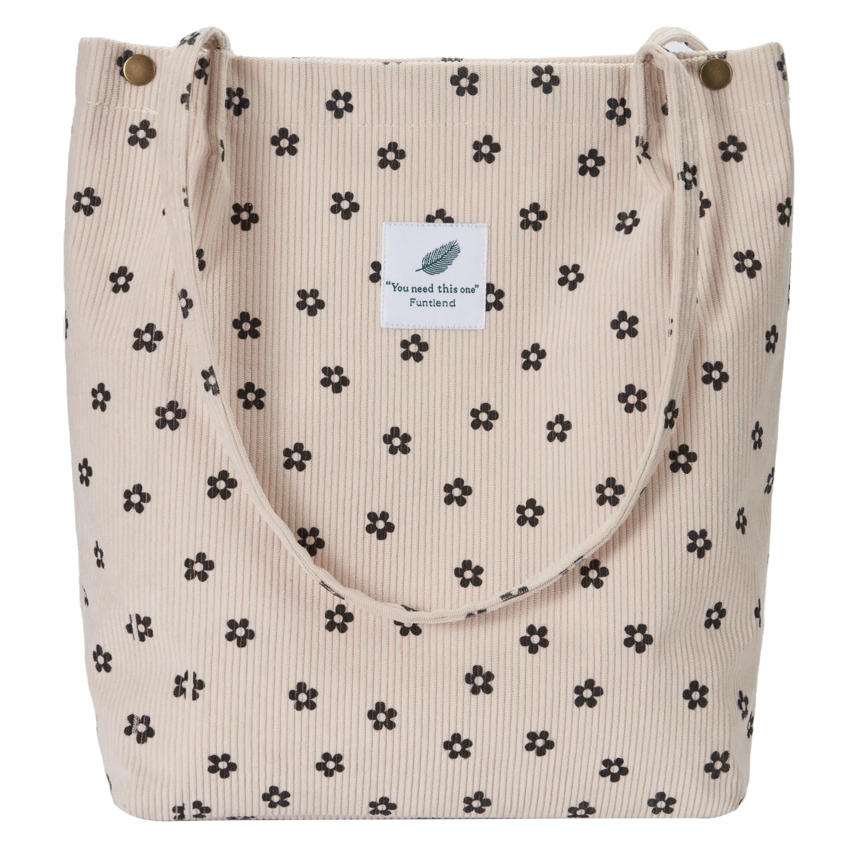 Funtlend Umhängetasche Damen Gross Cord Tasche Damen Handtasche Shopper Damen Henkeltasche für Uni Arbeit Mädchen Schule (Braun