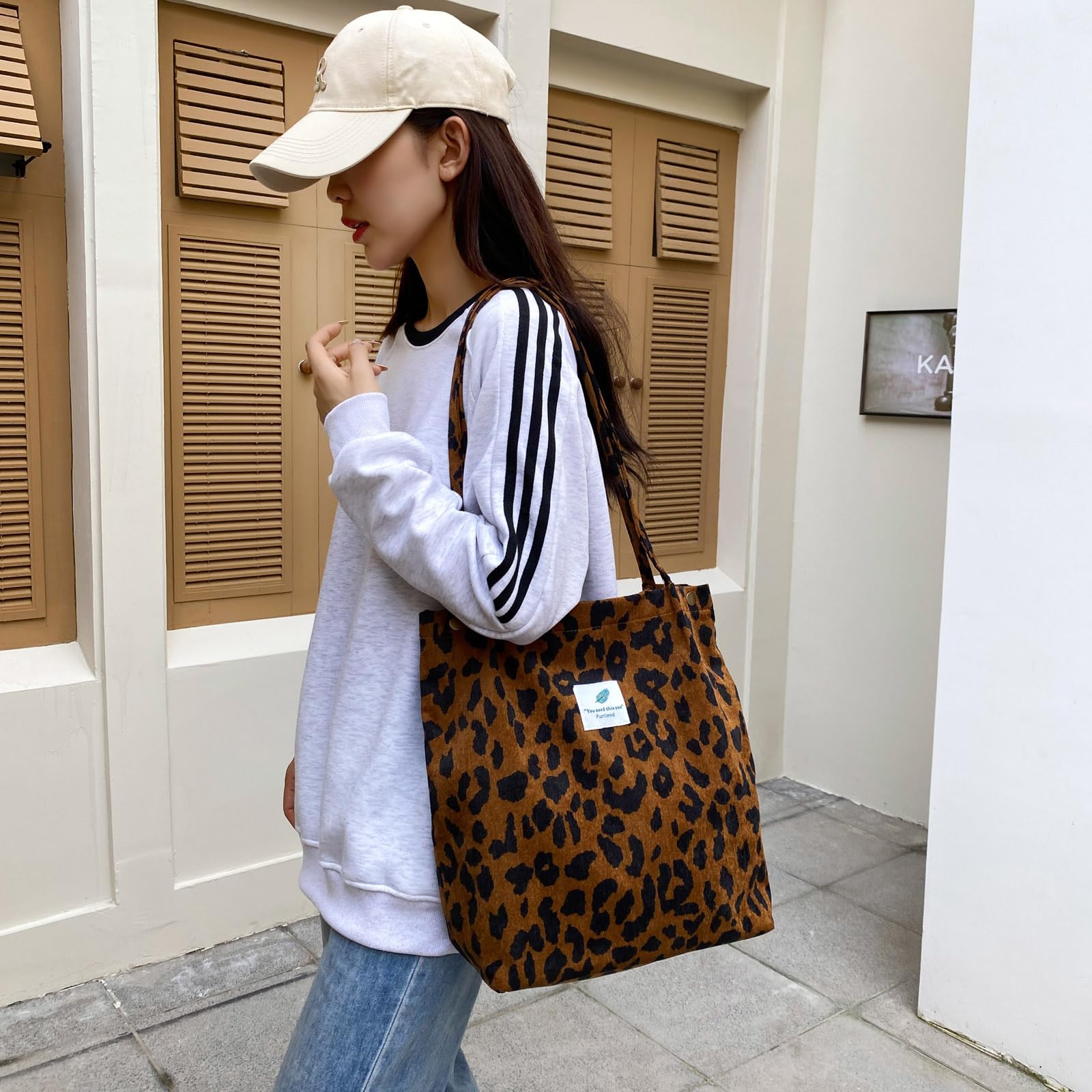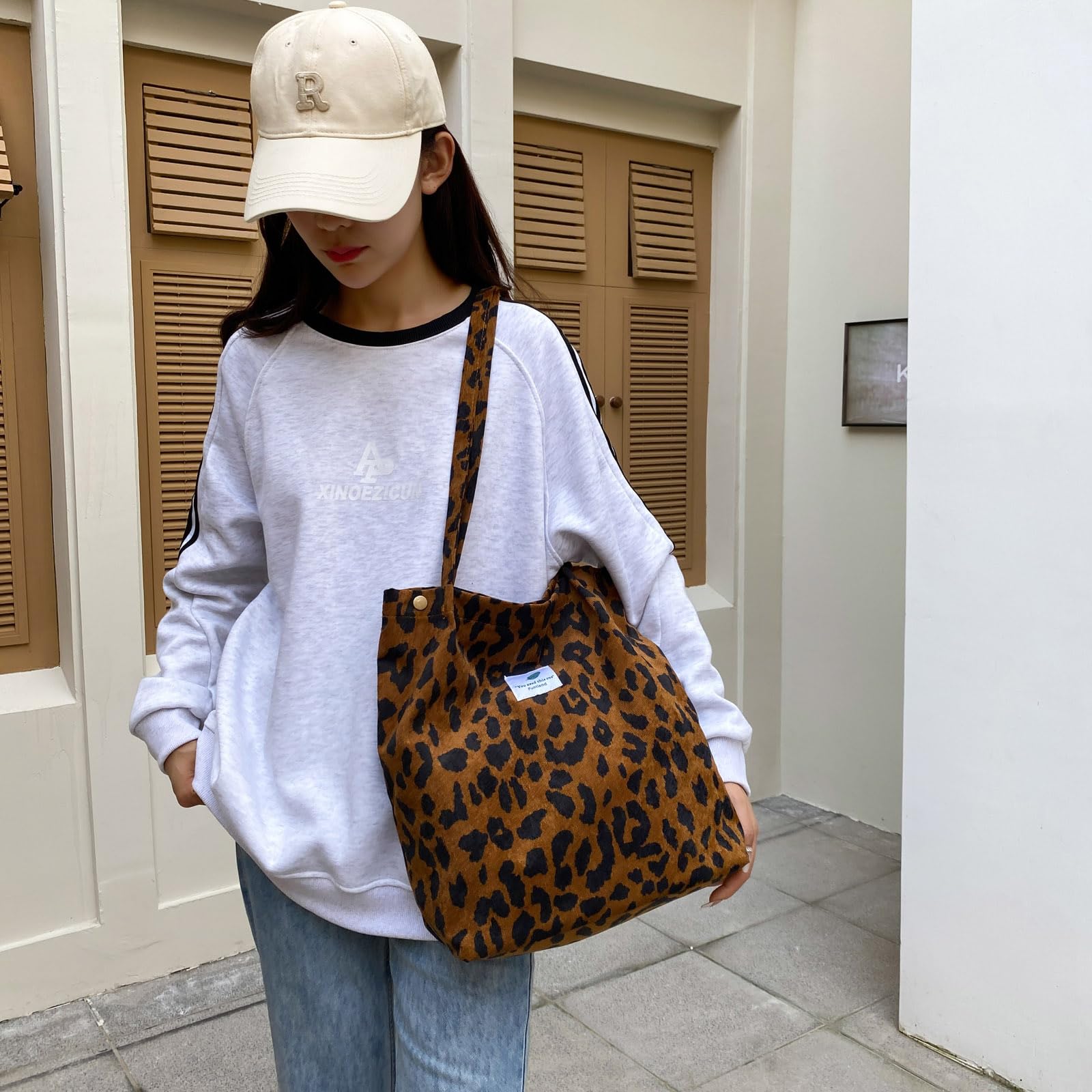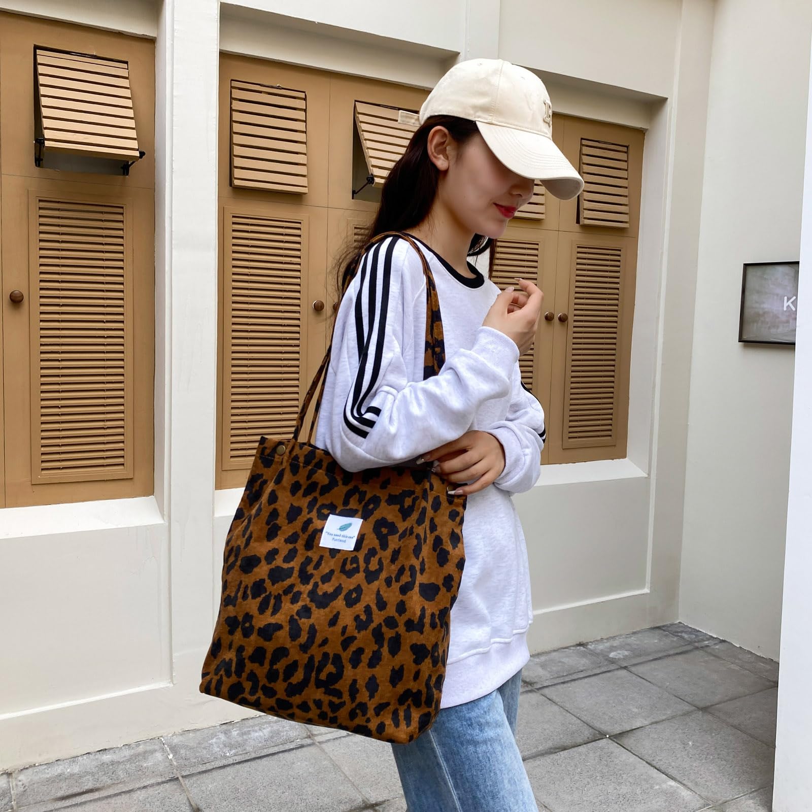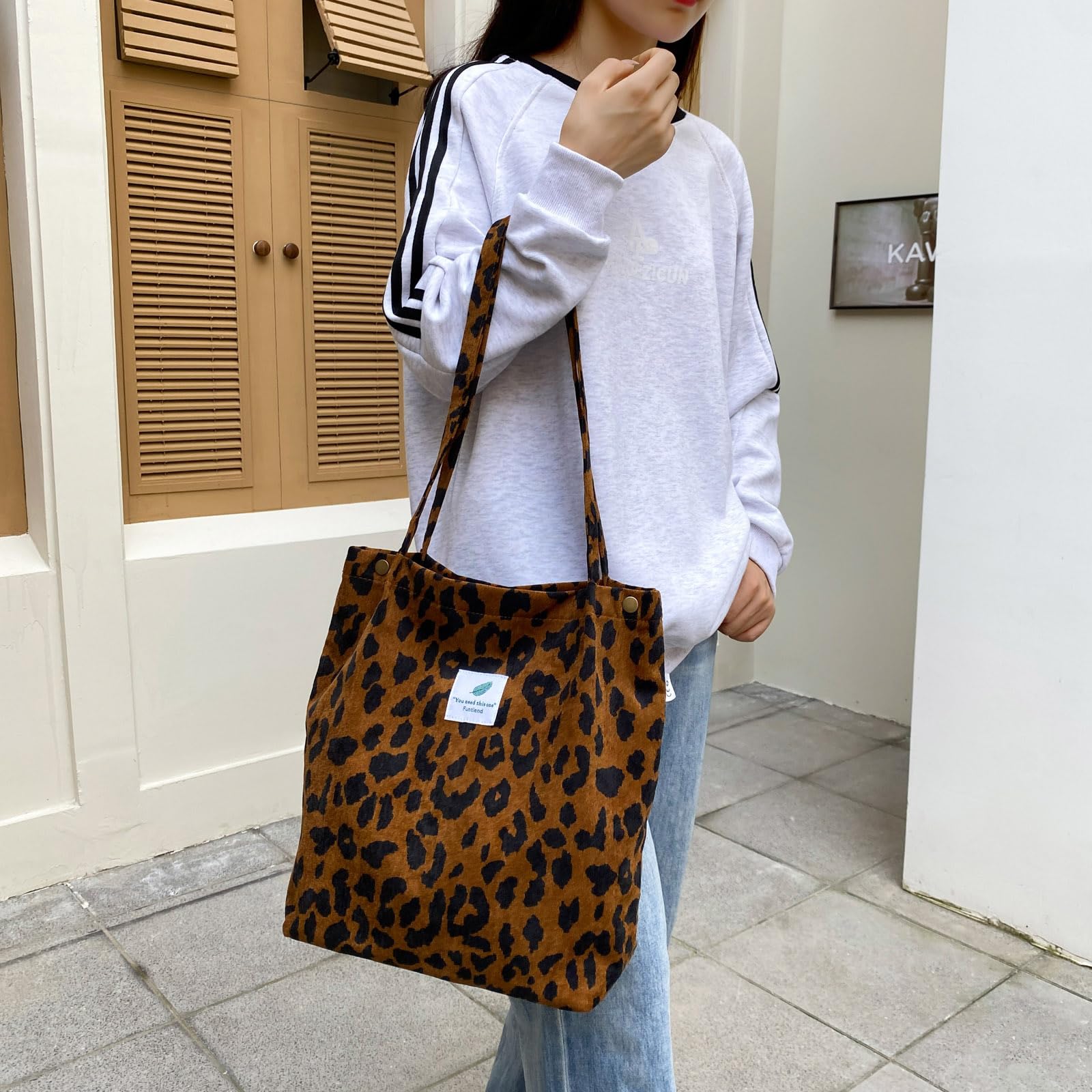 Funtlend Umhängetasche Damen Gross Cord Tasche Damen Handtasche Shopper Damen Henkeltasche für Uni Arbeit Mädchen Schule (Braun
