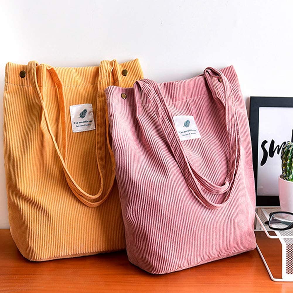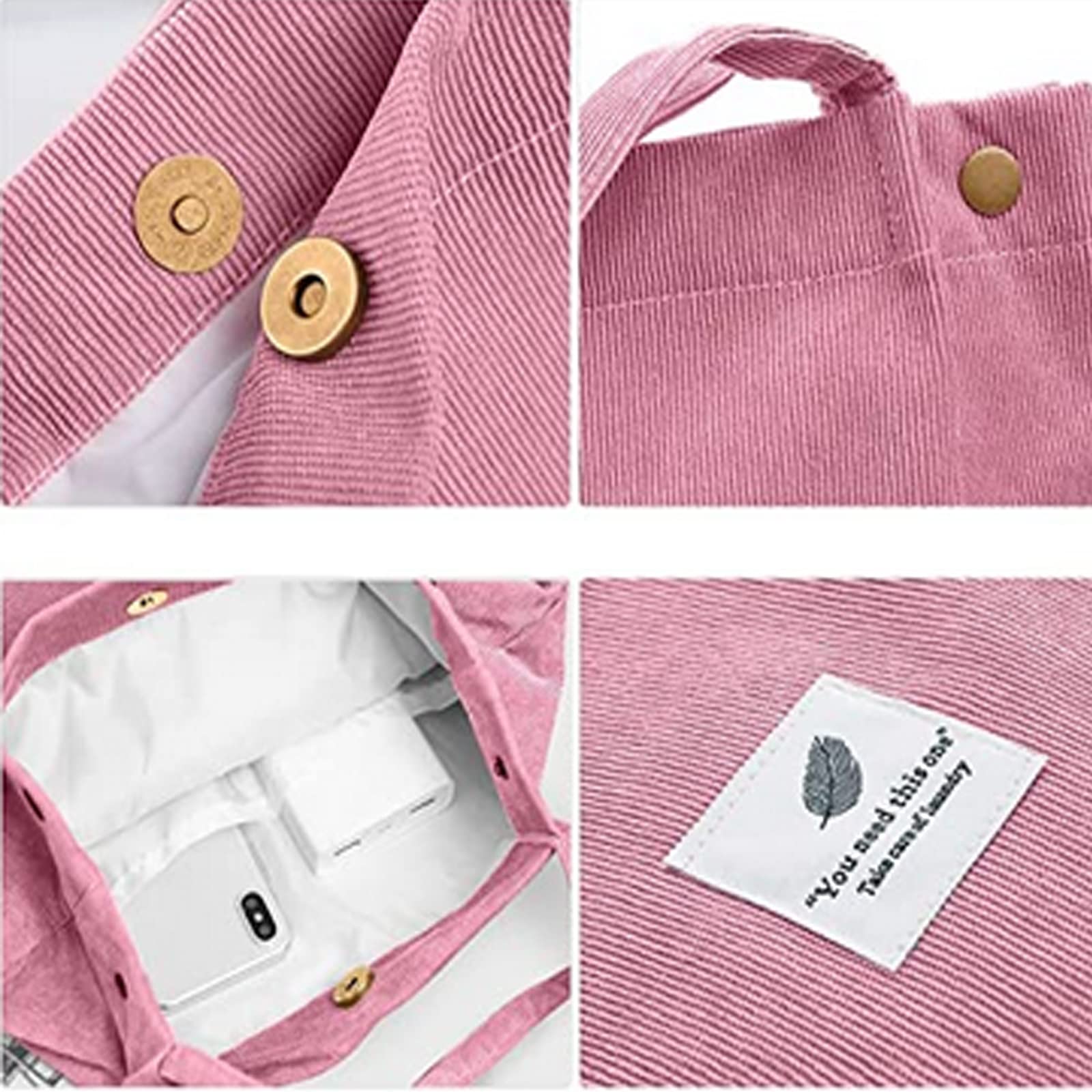 Funtlend Umhängetasche Damen Gross Cord Tasche Damen Handtasche Shopper Damen Henkeltasche für Uni Arbeit Mädchen Schule (Braun