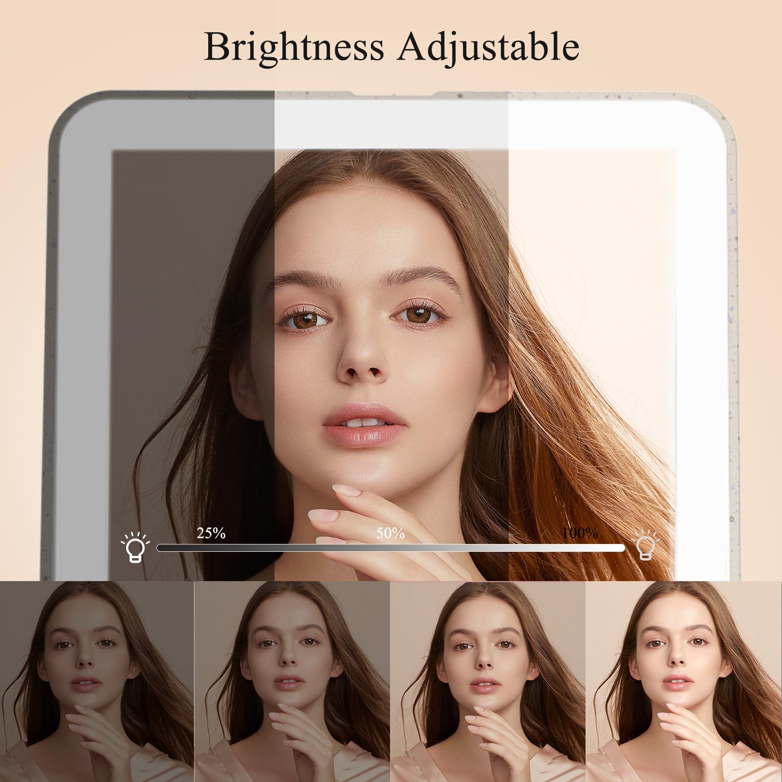 FUNTOUCH Schminkspiegel mit Beleuchtung, Wiederaufladbarer Tragbarer Reisespiegel Beleuchtet, 3 Farben Beleuchtung Spiegel Reisen, Dimmbarer Touchscreen, Faltbarer Kosmetikspiegel mit Licht(Straw)