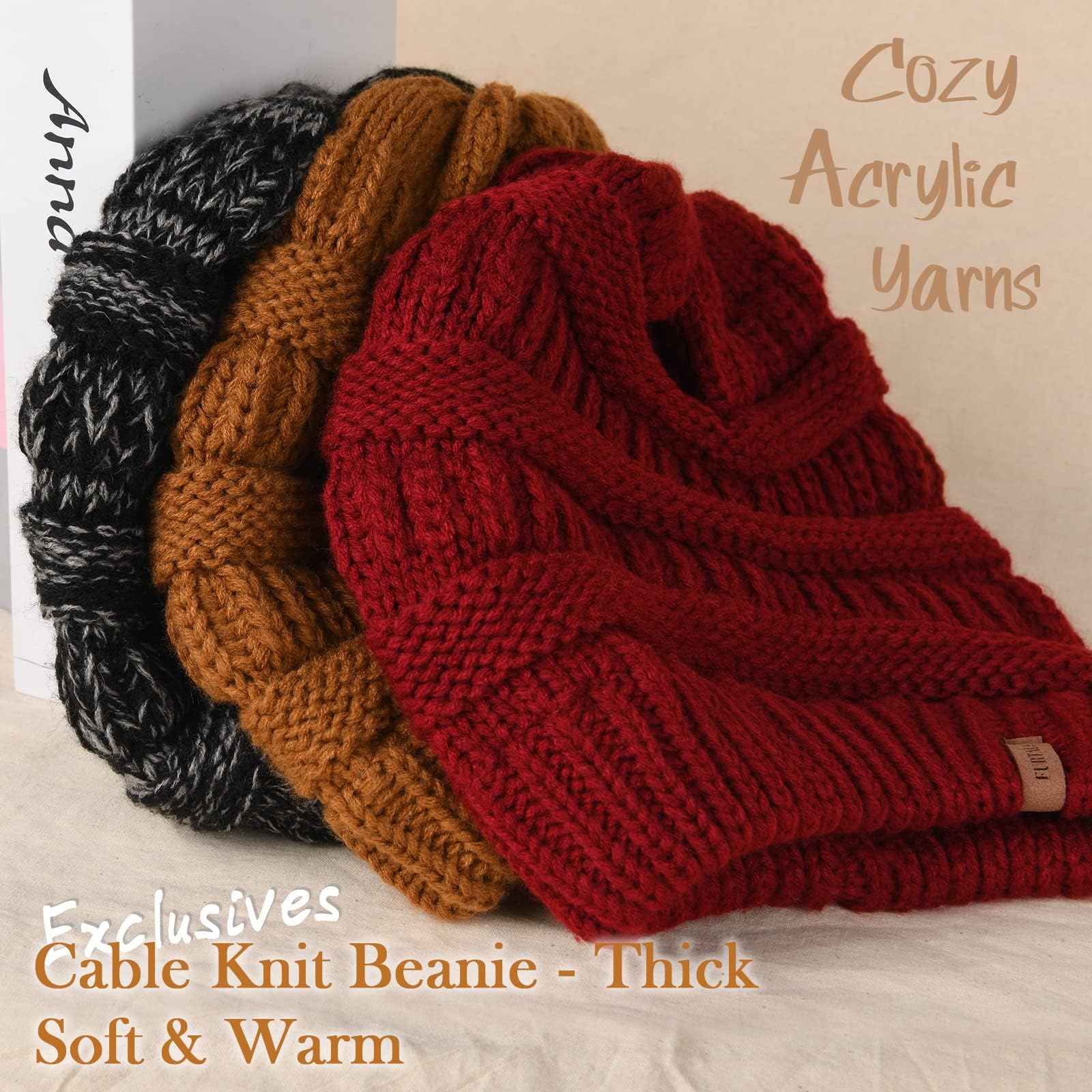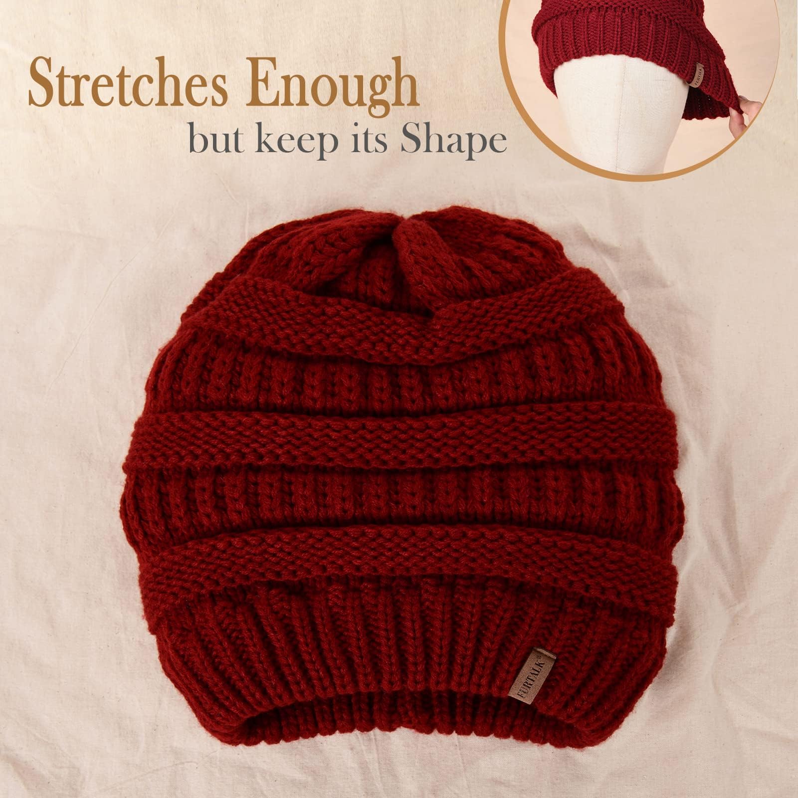 FURTALK Damen Beanie Mütze Warme Wintermütze mit Weichem Innenfutter Gefütterte Strickmütze,Weinrot,Einheitsgrösse Weiches und angenehmes Tragegefühl Weicher, warmer und geschmeidiger Stoff sorgt für einen super angenehmen Tragekomfort. Durch das Atmungsaktive und knitterfreie Material wird die Beaniemütze zu ihrem idealen Begleiter durch den gantzen Winter. Acryl Material Strickmütze mit sehr weichem, samtigem Innenfutter. Von aussen verfügt sie über hochwertigen weichen und angenehmen Acryl, von Innen hält sie aber wegen des dicken Futters sehr warm. Umfassende Anwendung Perfekt für Winter, Herbst und Frühling. Die Strickmütze eignet sich hervorragend für Outdoor Sportarten und Aktivitäten, wie Wandern, Camping, Skifahren, Joggen, Angeln, Klettern usw. Bitte lassen Sie der ihren Kopf ohne Erkältung schützen. Einheitsgrösse Unisex, Einheitsgrösse. Dank dem elastischen Strickstoff passt es mit einem Kopfumfang von 55-60 cm an die Umgebung, um die Ohren zu schützen. Formstabil und farbecht auch nach sehr, sehr vielen Wäschen Pflegehinweis Maschinenwäsche, unter 30 Grad. Handwäsche ist auch OK, aber nicht chemisch reinigen