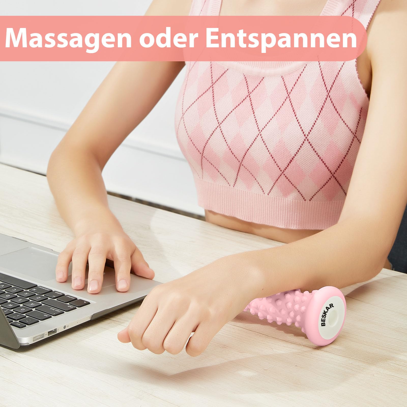 Vielseitig und einfach anzuwenden: Kompakt und tragbar, ideal für den Einsatz zu Hause, im Büro oder nach sportlicher Belastung. Rolle Deine Füsse über die massierenden Rillen, um gezielt Druck auszuüben und die Muskeln zu entspannen.